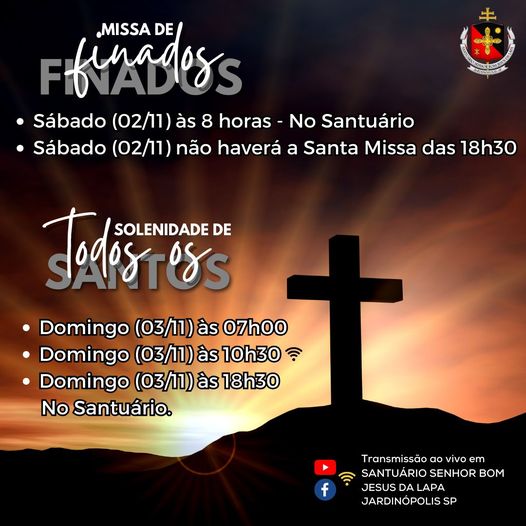 Matriz Santa Luzia: 19h30 (Solenidade Todos os Santos)