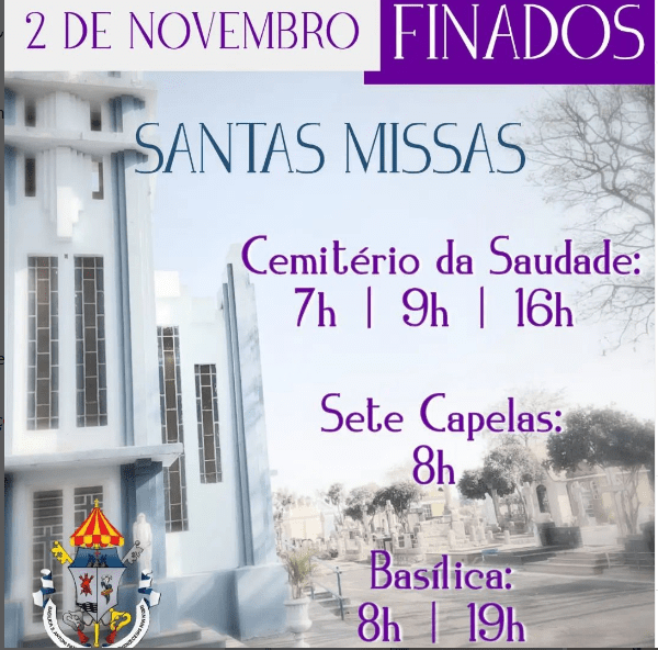 Missas no Cemitério da Saudade: 7h, 9h (Dom Moacir) e 16h