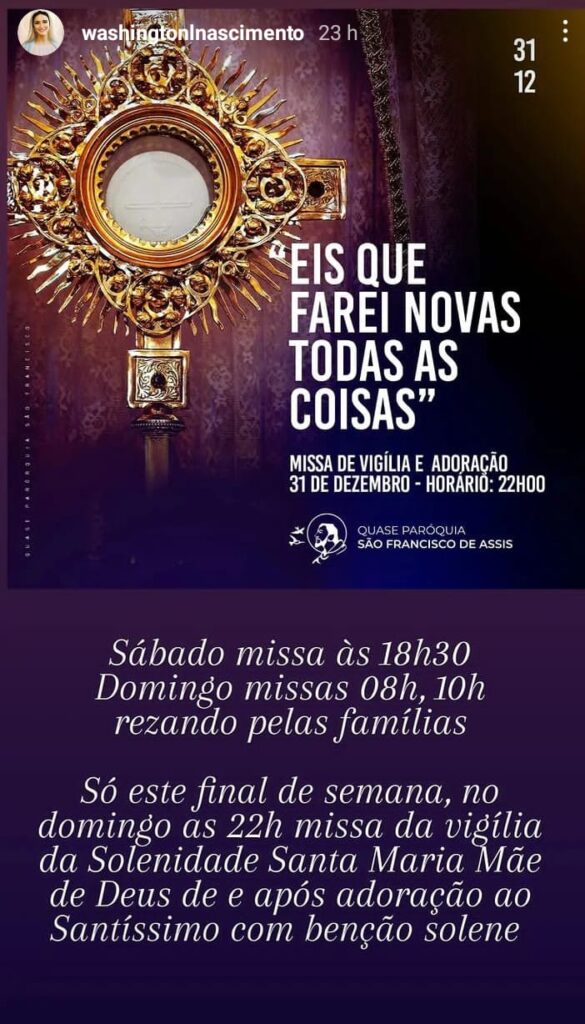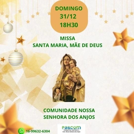 01 de janeiro de 2024: 19h15 (Solenidade da Santa Mãe de Deus)