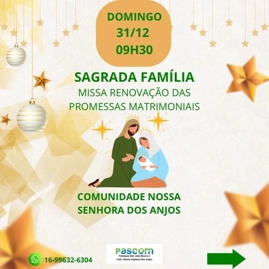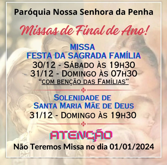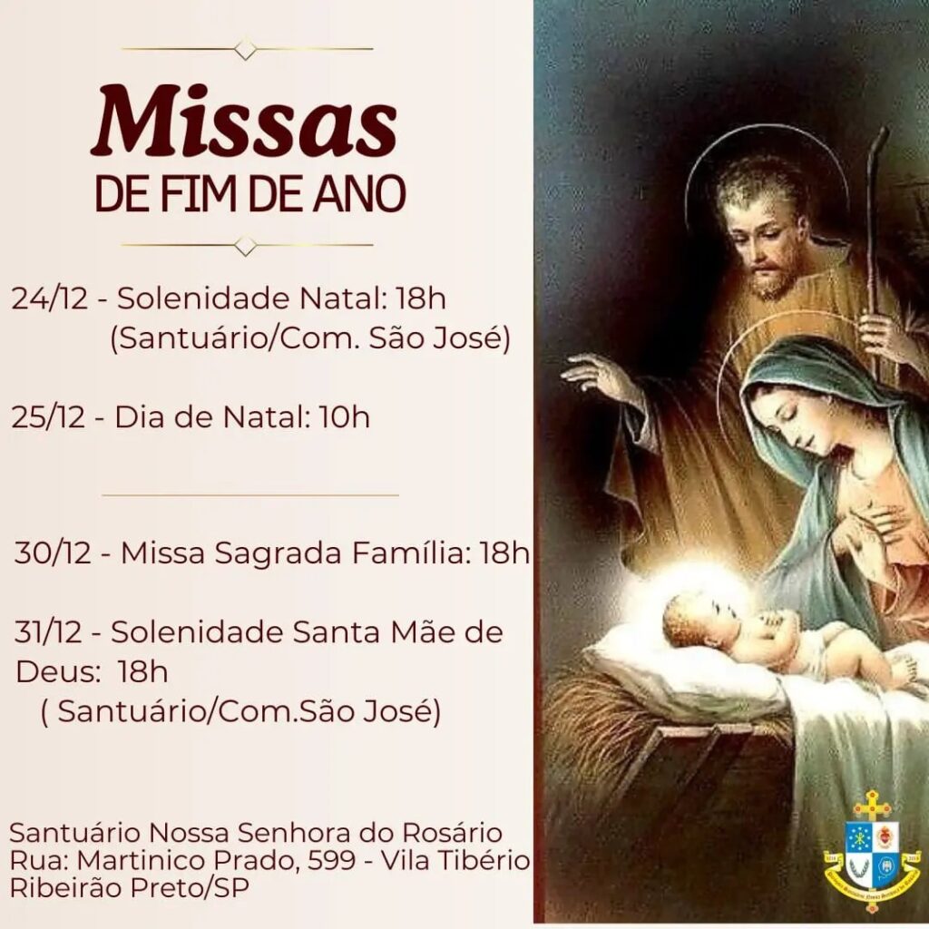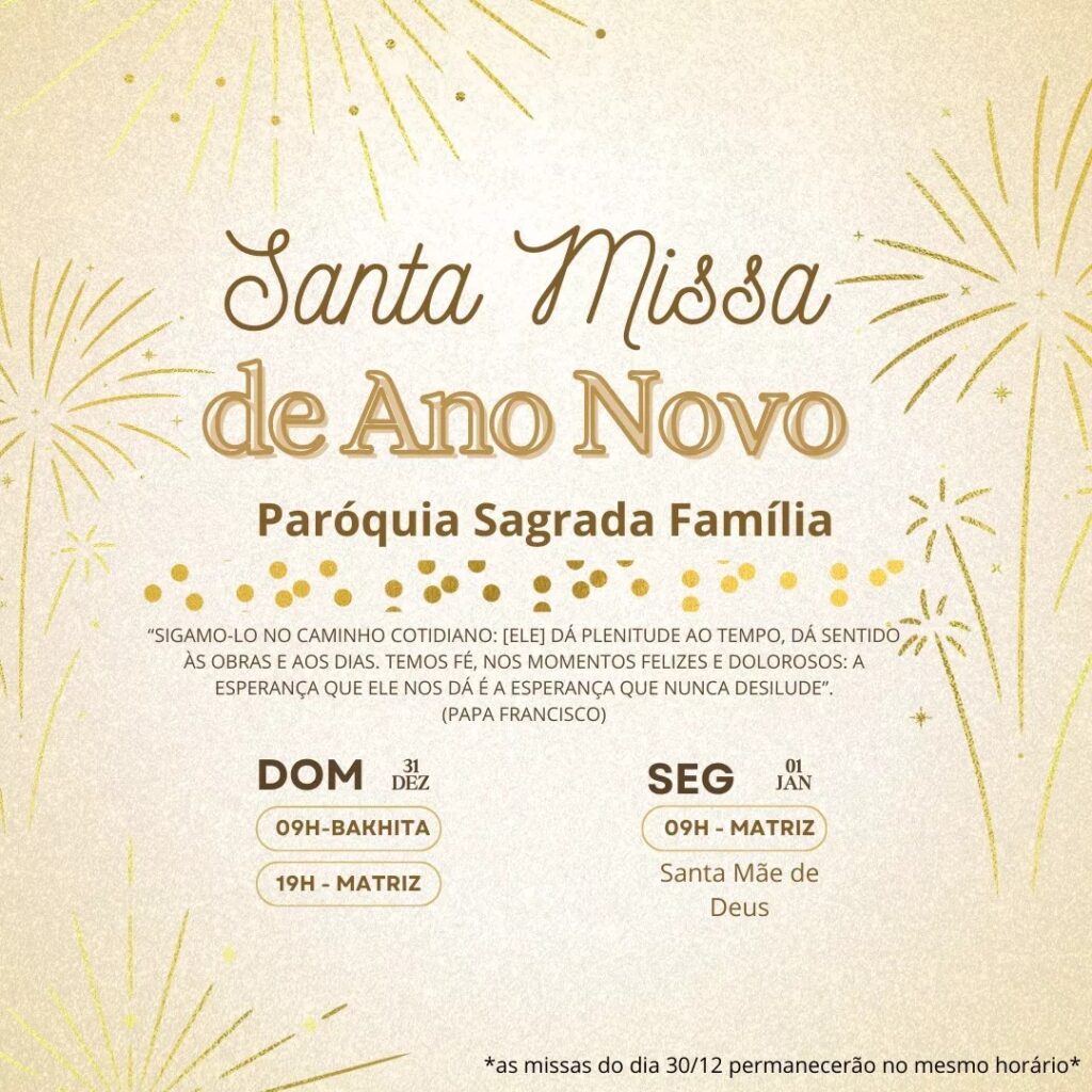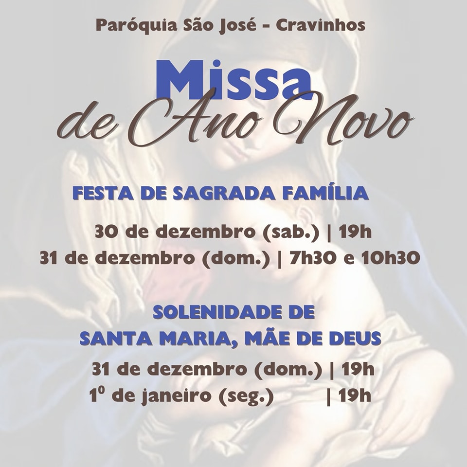 31 de dezembro: 9h30 e 11h30 (Sagrada Família)