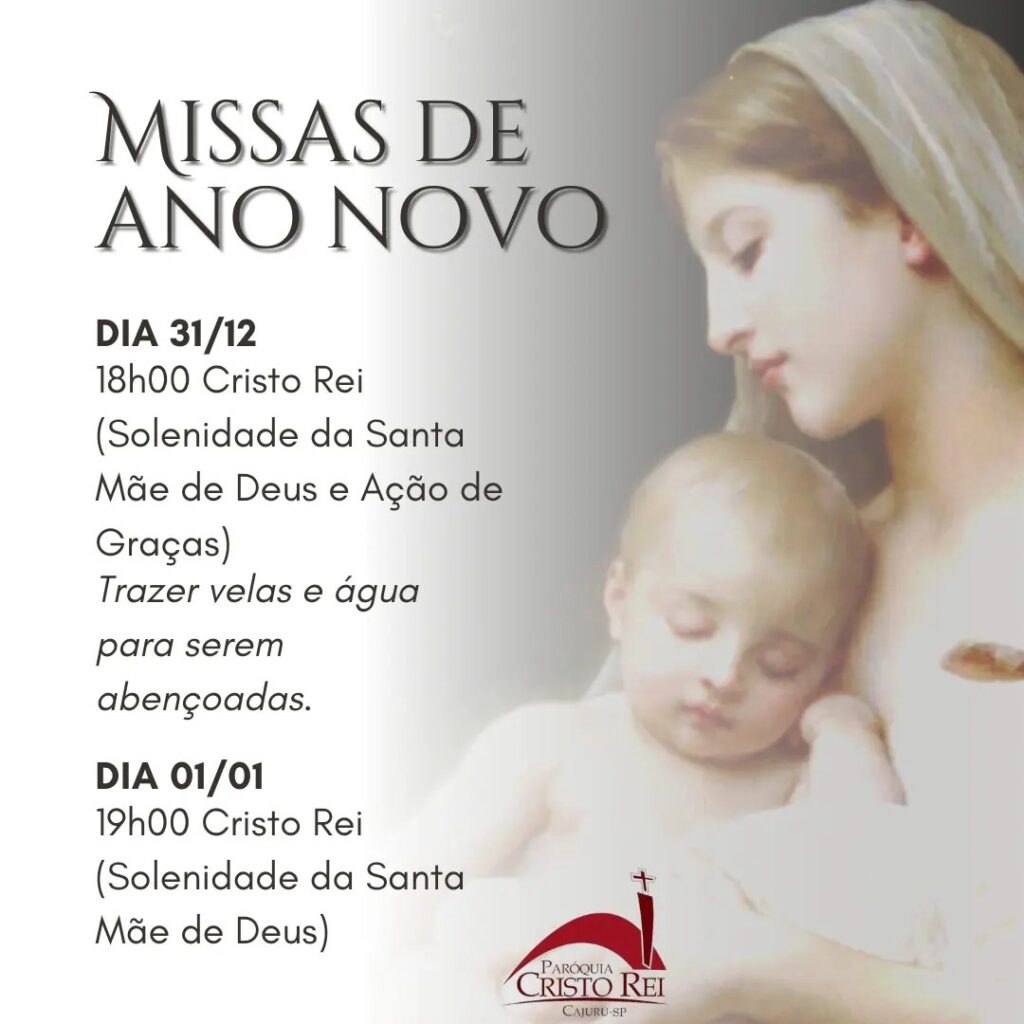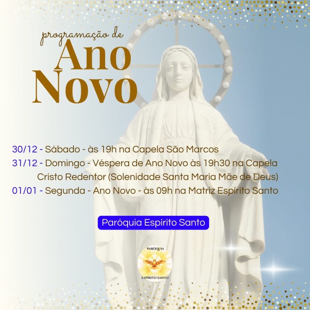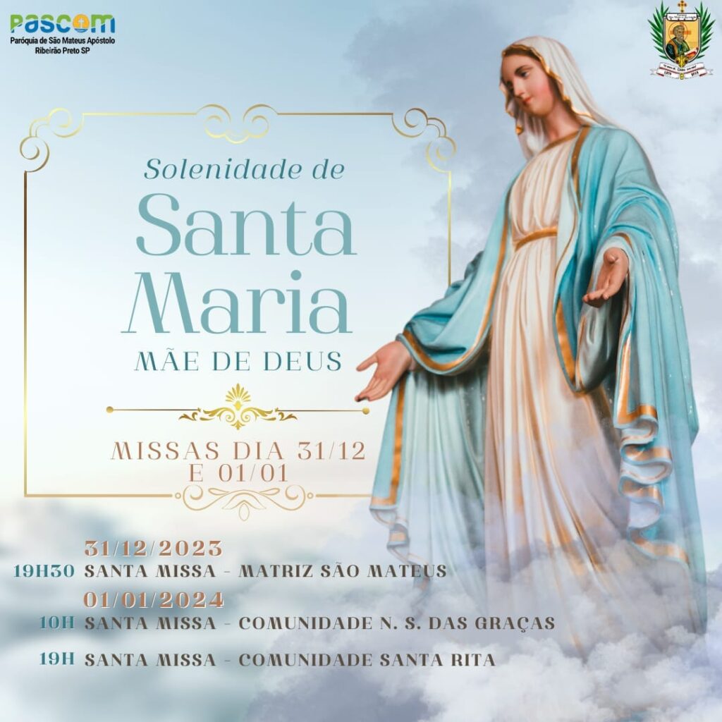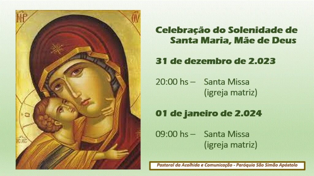 01/01/24 (Santa Maria, Mãe de Deus): 19h30 – Matriz de São Judas Tadeu