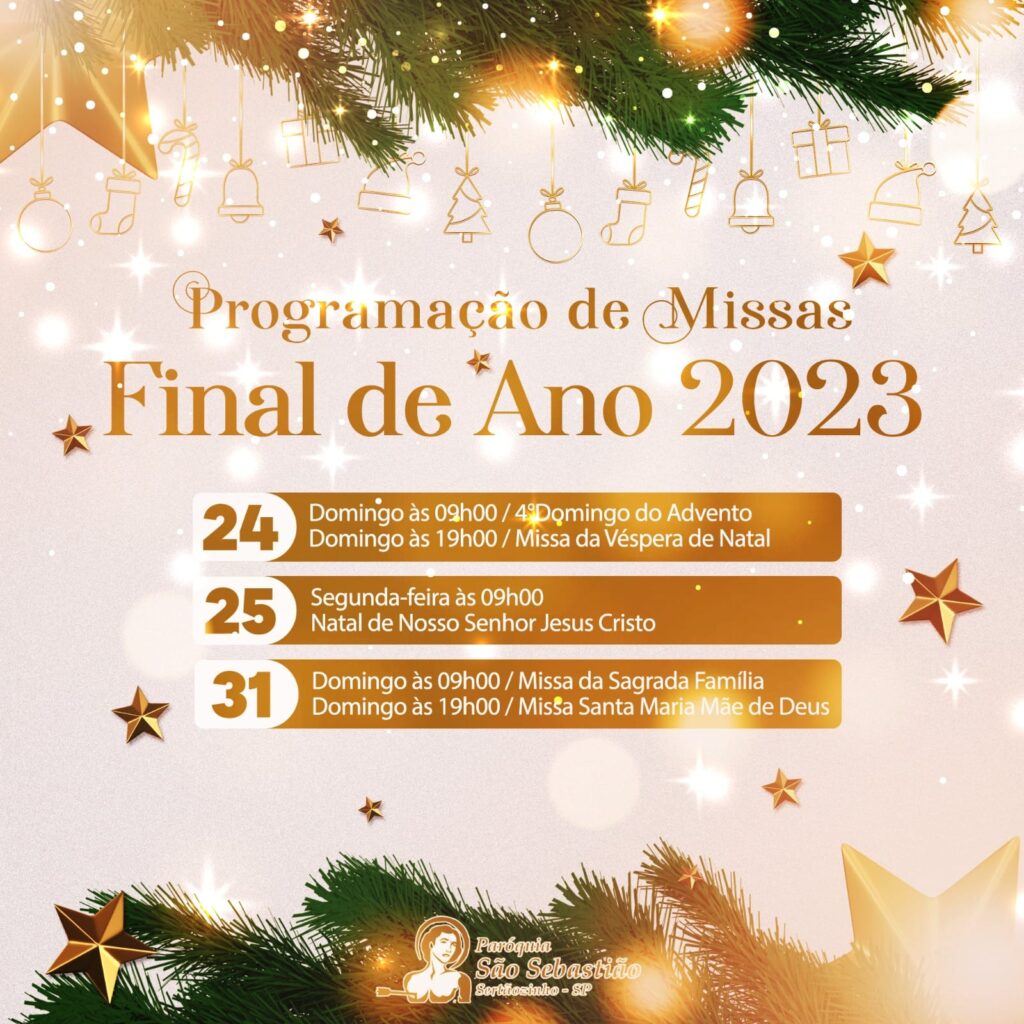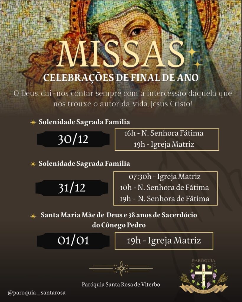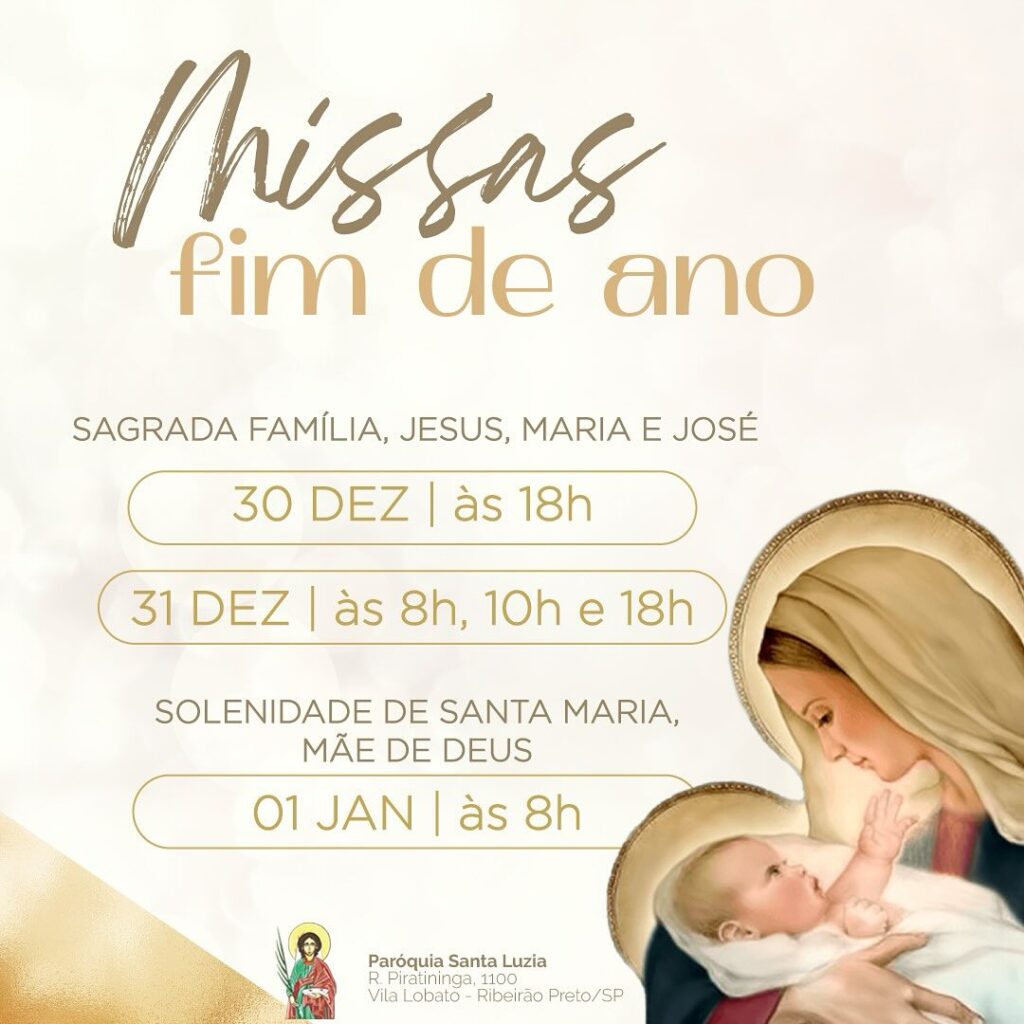 01/01/24 (Santa Maria, Mãe de Deus): 19h30 – Matriz de São Judas Tadeu
