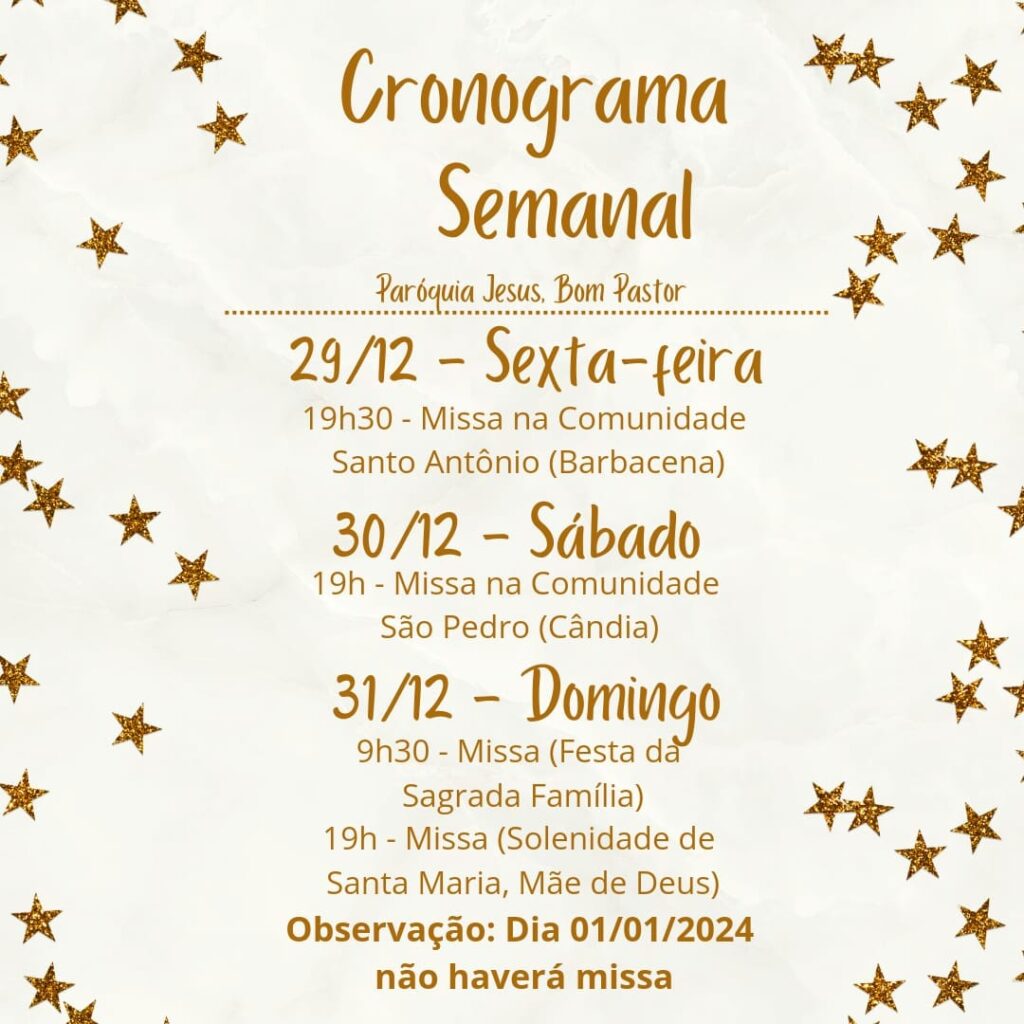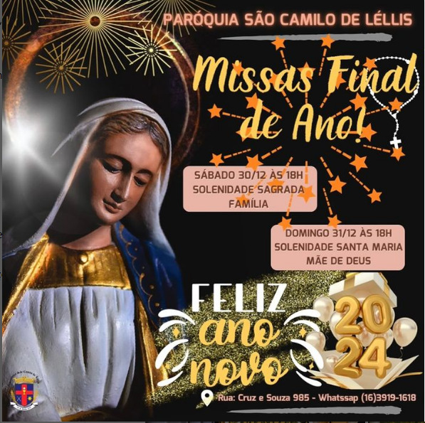01 de janeiro de 2024: não haverá missa