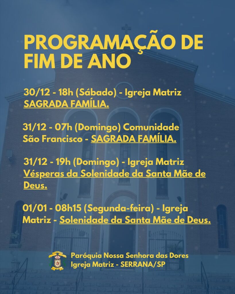 31/12 (Sagrada Família): 20h – Matriz de São Judas Tadeu