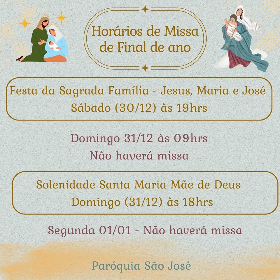 Missas paroquiais nas Solenidades da Sagrada Família e Santa Maria, Mãe de Deus – 2023/2024