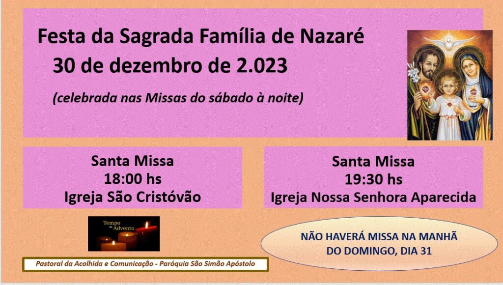 30 de dezembro: Sagrada Família: 18h15