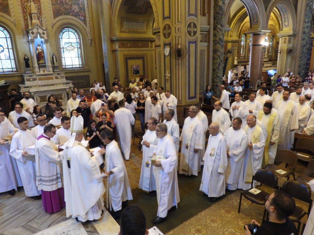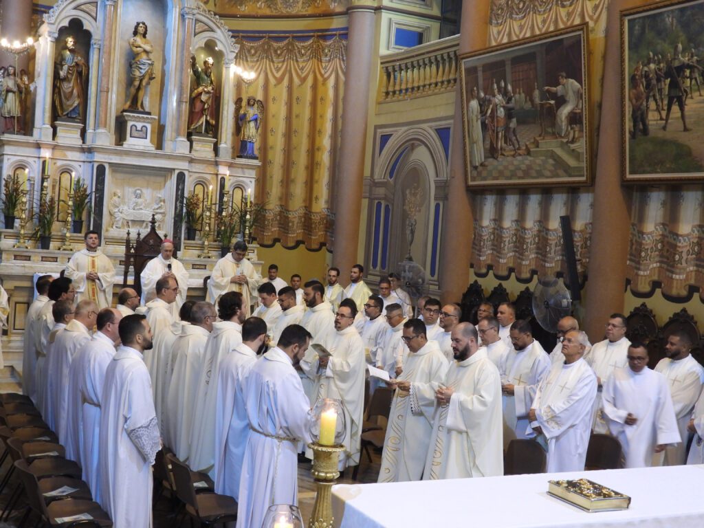 O texto da Recordação da Vida fez memória da caminhada sacerdotal e lembrou dos padres jubilares. “Queridos irmãos e irmãs, reunidos nesta Igreja Catedral, que resplandece para nós como sinal visível da unidade da Igreja, contemplamos hoje toda a nossa Arquidiocese, congregada em torno de seu pastor, para a celebração da Missa Crismal. Nesta Sagrada Liturgia serão abençoados os olhos dos catecúmenos e dos enfermos, frutos da generosa oliveira, e será consagrado o Santo Crisma, sinal do Espírito Santo, que santifica o povo de Deus e fortalece aqueles que são chamados a participar da missão de Cristo. Neste dia manifesta-se de modo singular a comunhão da Igreja, pois também nesta celebração os sacerdotes renovam, diante do Bispo e de todo o povo santo de Deus, as promessas feitas no dia de sua ordenação. A Igreja, antiga e sempre nova pela ação do Espírito Santo, que a governa, dirige e santifica, peregrina neste mundo como Mãe e Mestra da Verdade, da Caridade e da Unidade, confiando os seus dons a homens chamados a serem ministros dispensadores da graça de Cristo. Movidos pela mesma força do Espírito, que faz ressoar na Igreja a voz do Senhor, que continua a chamar, elevemos também nossas preces por todas as vocações, preciosos sinais do mistério de Cristo no meio de seu povo. Dentre elas, rezamos pelos padres que fazem 25 anos de ordenação sacerdotal: Marcos da Mata, Edimário Gomes, Marcos Cândido, Ângelo Crivelaro, Giovanni Augusto Vieira, Acássio Ferreira Rocha, Amauri Sérgio Marques. Também por aqueles que fazem 30 anos de ministério: Hélio Tadeu da Silva, Aparecido Maciel, Antônio Carlos Roberto da Paz (Tom), José Aparecido Borini, Sérgio Donizeti Carmona e Ilson Vicente Olimpio. E também pelo Cônego Pedro Carlos, que completa 40 anos de ministério sacerdotal.