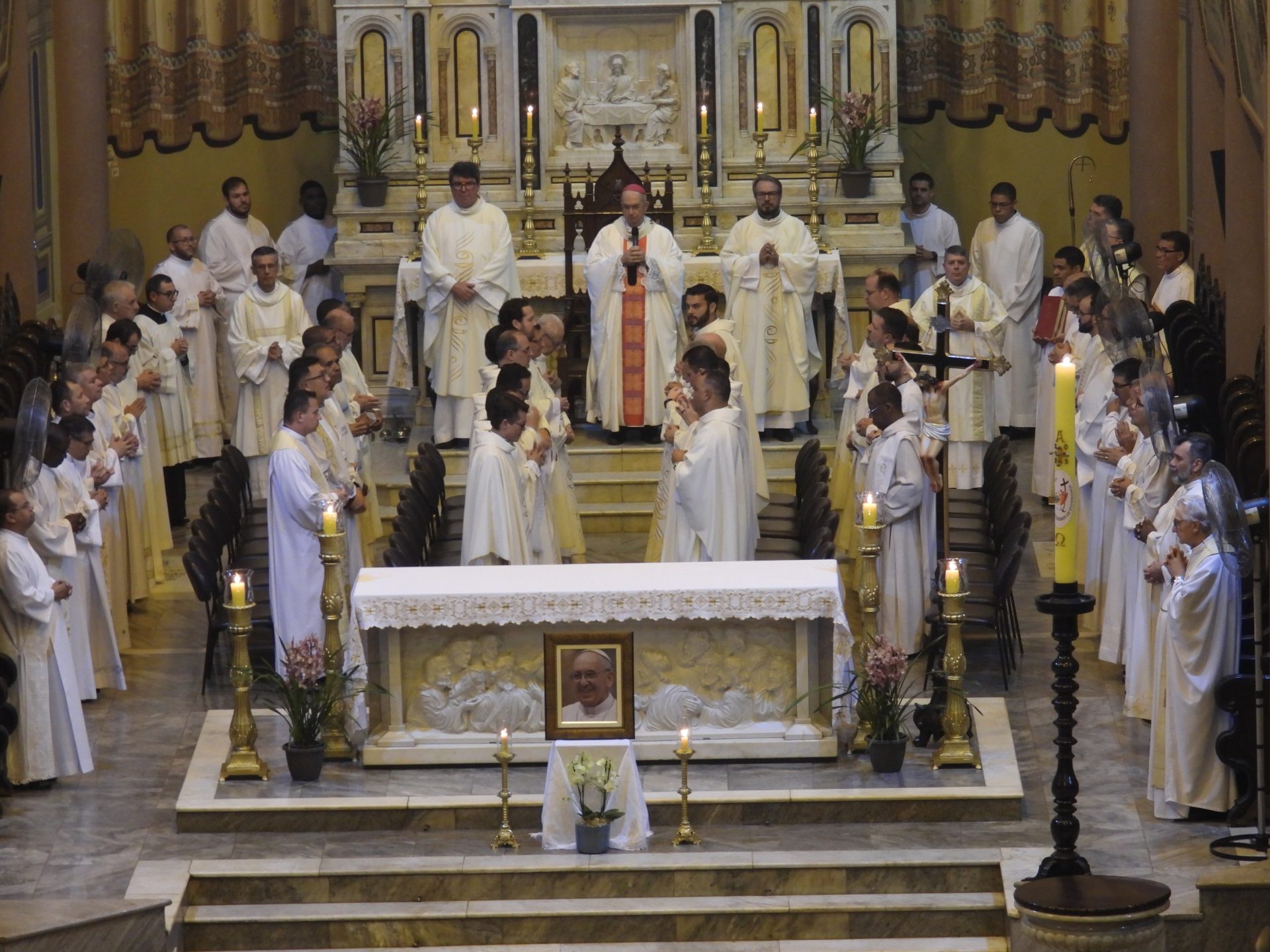 A Catedral Metropolitana de São Sebastião, em Ribeirão Preto, acolheu na manhã da Quinta-feira Santa, 17 de abril, às 9 horas, os padres, diáconos, seminaristas, candidatos da Escola Diaconal, fiéis da Arquidiocese de Ribeirão Preto para a concelebração eucarística da Missa Crismal