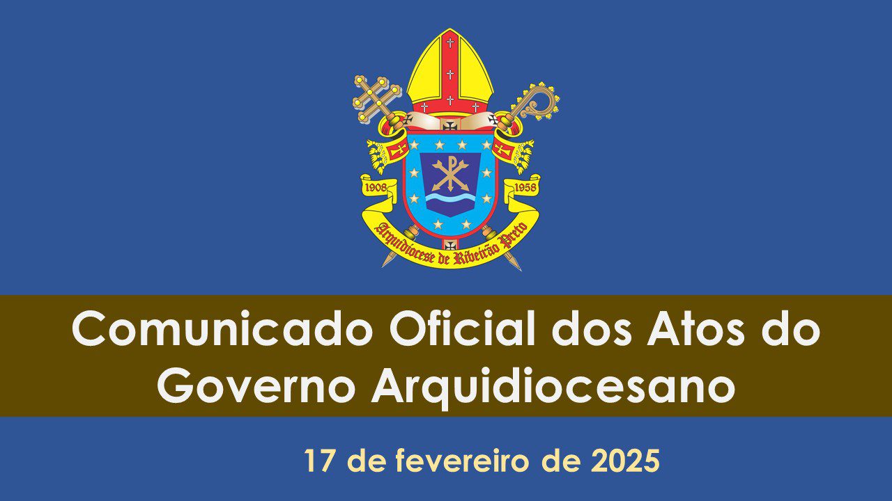 A Chancelaria da Arquidiocese de Ribeirão Preto torna pública as determinações de Dom Moacir Silva, Arcebispo Metropolitano de Ribeirão Preto, em 17 de fevereiro de 2025