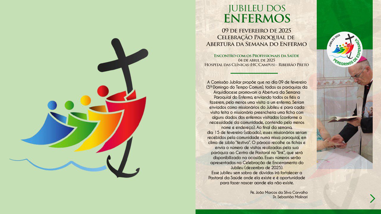 A Comissão Especial para o Jubileu Ordinário 2025 propôs que, em 09 de fevereiro (5º Domingo do Tempo Comum), todas as Paróquias da Arquidiocese promovam a Abertura da Semana Paroquial dos Enfermos
