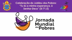 Com o tema: “Tu és a minha esperança, ó Senhor Deus” (Sl 71,5) e o lema: “Chamados a criar novos sinais de esperança, de 10 a 16 de novembro, ocorre a nona edição da Jornada Mundial dos Pobres (JMP). O Jubileu dos Pobres ocorrerá, em 16 de novembro (33º Domingo do Tempo Comum), às 8h, em celebração eucarística presidida pelo Arcebispo Dom Moacir Silva, na Casa Santa Dulce dos Pobres