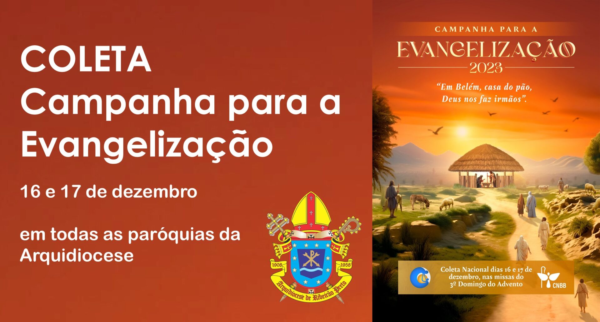 A Campanha para a Evangelização 2023 quer ser uma ponte a nos conduzir da Campanha da Fraternidade 2023, sobre a fome, à Campanha da Fraternidade 2024, sobre “Fraternidade e amizade social”, passando pelo Mistério da Encarnação. Por isso, o tema escolhido é: “Em Belém, casa do pão, Deus nos faz irmãos”.