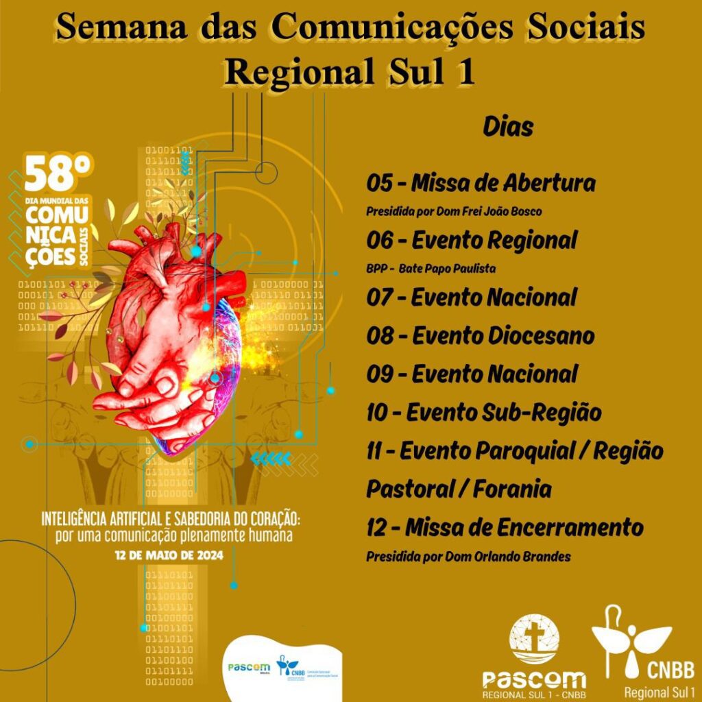 O 58º Dia Mundial das Comunicações, em 12 de maio, se aproxima e a Comissão Episcopal para a Comunicação da Conferência Nacional dos Bispos do Brasil (CNBB) divulgou a programação da 5ª Semana de Comunicação, a ser celebrada de 6 a 12 de maio. Neste ano, o tema “Inteligência artificial e sabedoria do coração: por uma comunicação plenamente humana” anima as reflexões, conforme a mensagem do Papa Francisco para a data.