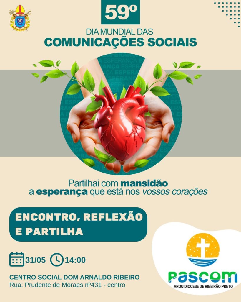 A Pastoral da Comunicação convida você para um momento de encontro, reflexão e partilha sobre a mensagem do 59º Dia Mundial das Comunicações Sociais.
