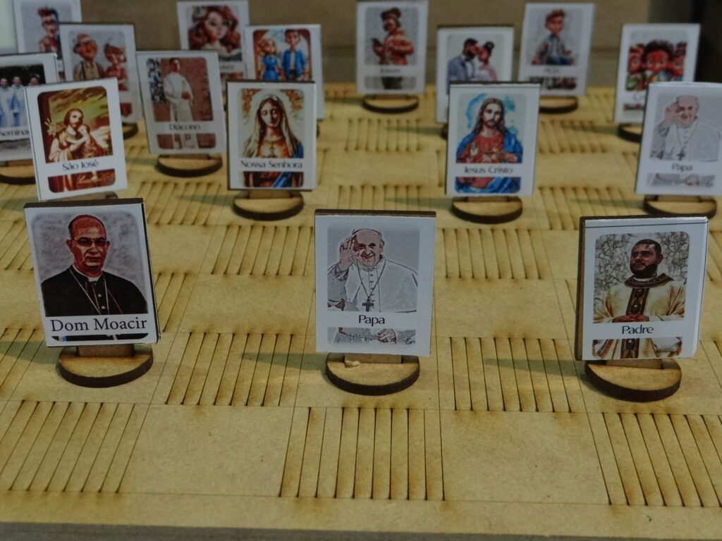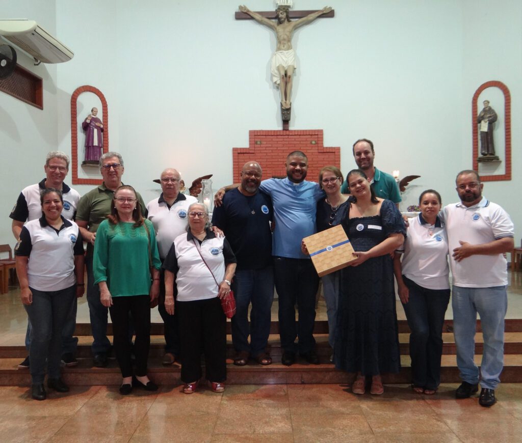 Antes dos ritos finais, o padre Luís Felipe Rodrigues da Silva, dirigiu mensagem de agradecimento e explicou o símbolo a ser entregue aos representantes paroquiais como marco da Semana Nacional da Família. Trata-se de um tabuleiro de jogo de damas personalizado, inspirado em sugestão do Papa Francisco: “O jogo de dama tem duas belas características: estimula a mente e é acessível a todos. Ele exige inteligência, habilidade e atenção, mas não grandes recursos e estruturas. É um daqueles jogos com os quais, onde quer que se encontre, se pode facilmente criar um momento de encontro e diversão: tudo do que se precisa é de um tabuleiro de xadrez e damas, dois jogadores, e é uma maneira agradável de estar junto. Isso faz com que a dama seja um jogo para todos, praticado em várias partes do mundo” (Papa Francisco, 26/04/2024). O padre Luís motivou as equipes da Pastoral Familiar a dar visibilidade ao símbolo: “Como já é de costume entre nós, nossa Equipe Arquidiocesana da Pastoral Familiar, preparou com criatividade, carinho e valoroso empenho do símbolo enviado a cada comunidade, para auxiliar na vivência e reflexão, em espírito de sinodalidade, da Semana Nacional da Família, por isso, pedimos que aproveitem, usem, deixem visível, em destaque na comunidade, façam bom uso dele nos diferentes momentos, tornando assim ‘visível’ nossa temática e também a unidade arquidiocesana”, finalizou o assessor.
