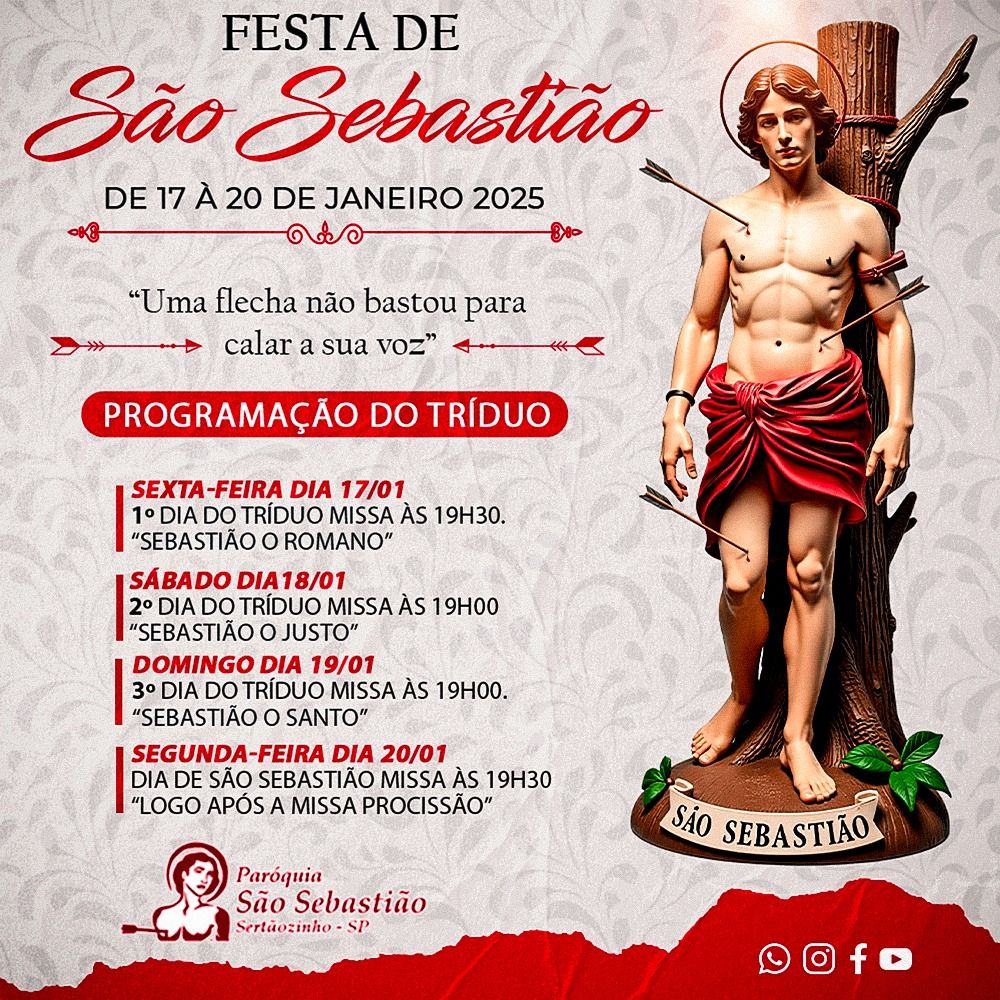 Neste mês de janeiro de 2025 celebramos o padroeiro da Arquidiocese de Ribeirão Preto: São Sebastião, Mártir e Patrono contra a peste, a fome e a guerra.