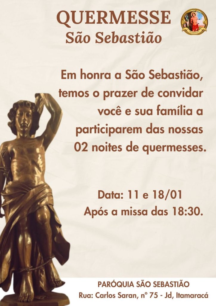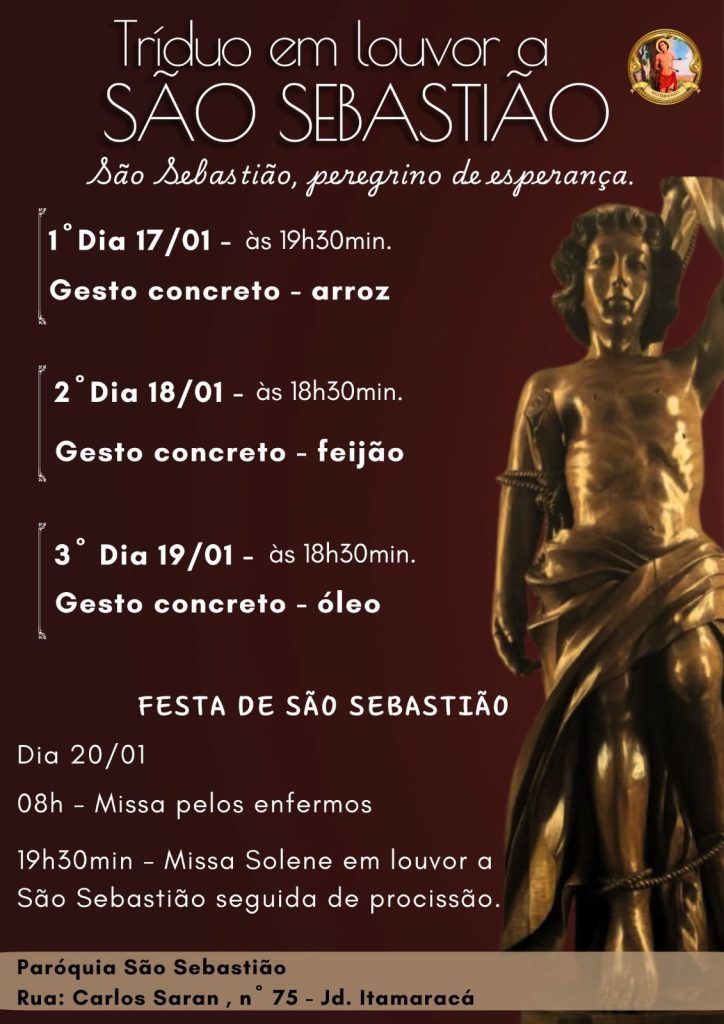 Confira a programação paroquial nas paróquias e comunidades dedicadas a São Sebastião.
