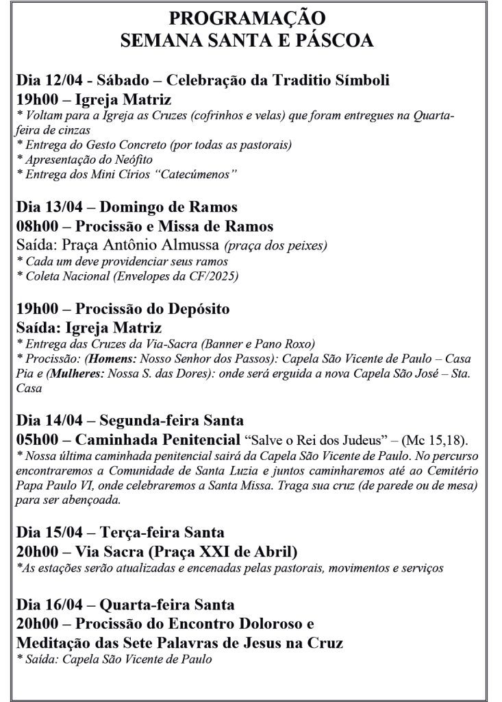 Confira a programação das celebrações da Semana Santa nas paróquias do interior da Arquidiocese (organizada por foranias).