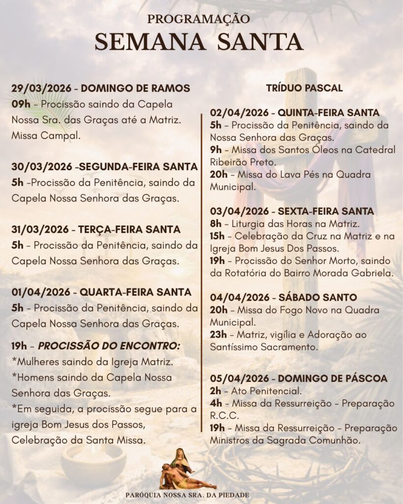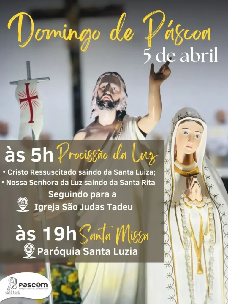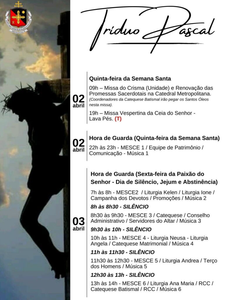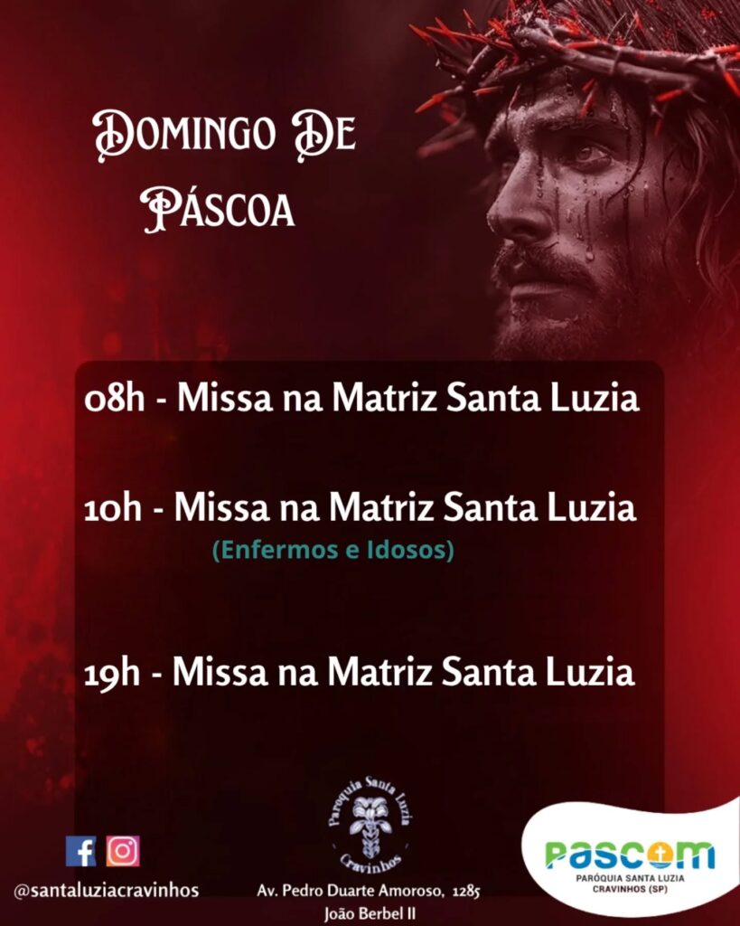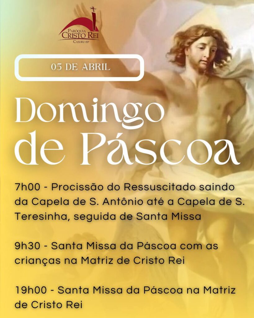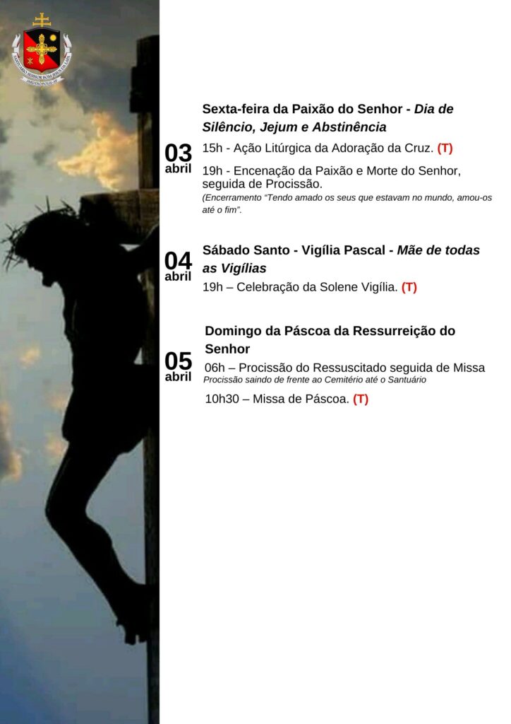 Obs.: terminada esta celebração, nos reuniremos com todos os coroinhas, acólitos e clarissas no Salão São João Paulo ll, para o costumeiro “momento pascal” junto a este querido e especial grupo.
