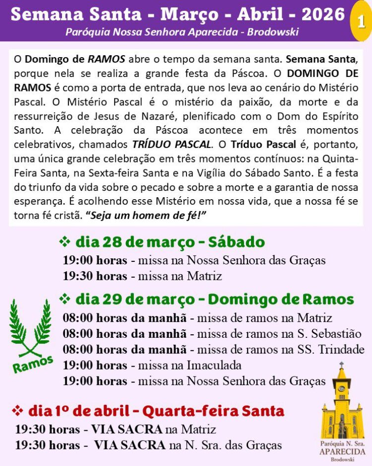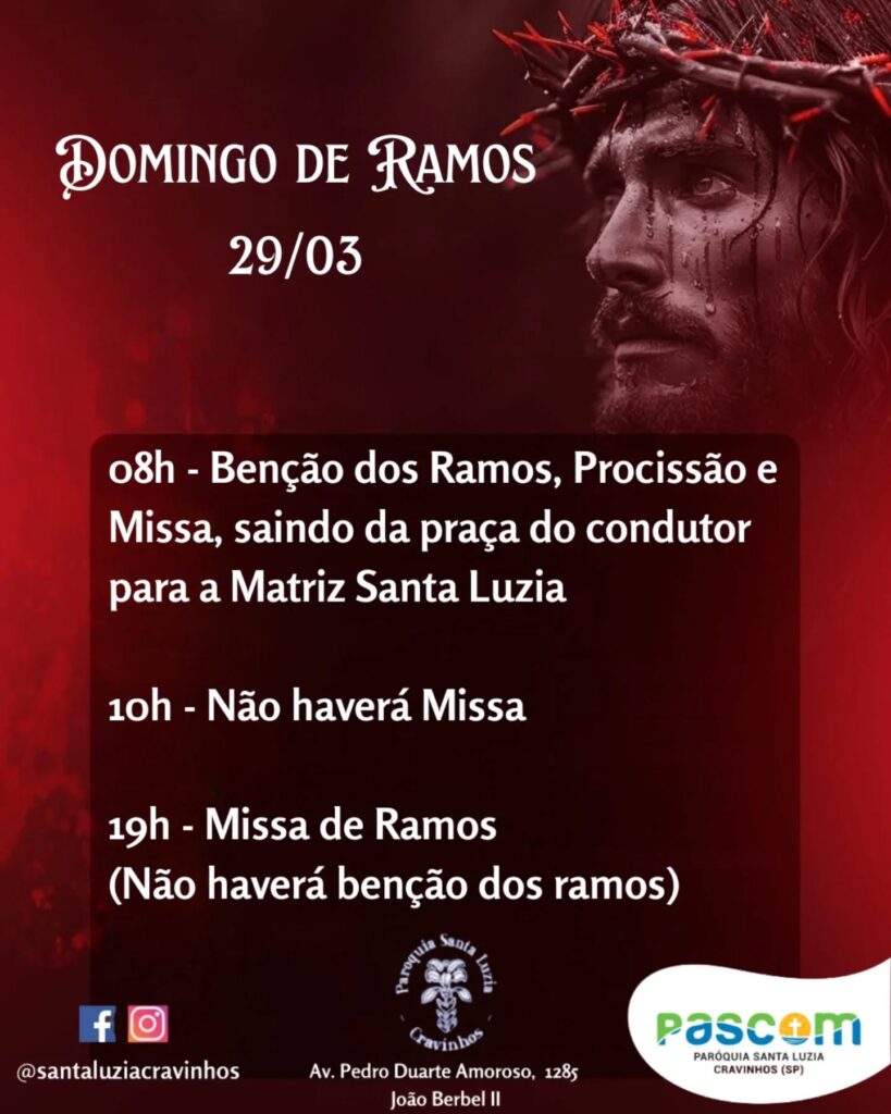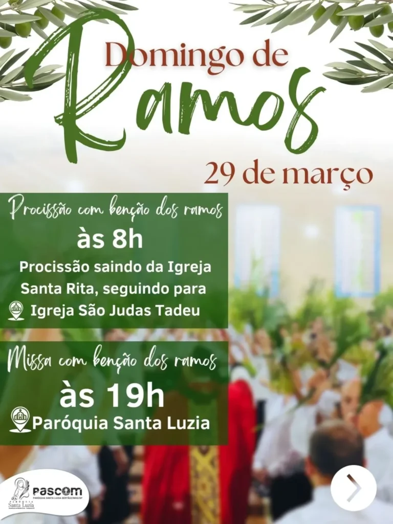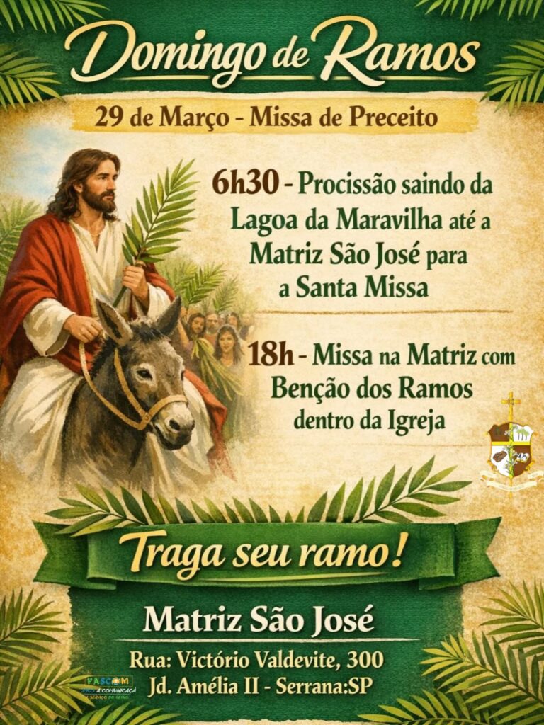 13/04: Domingo de Ramos e da Paixão do Senhor – início da Semana Santa:
