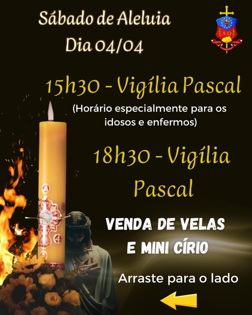 Atenção: Cada Comunidade acenderá nesta Vigília, seu Círio Pascal. Será distribuída também, a Água Pascal a todos os presentes
