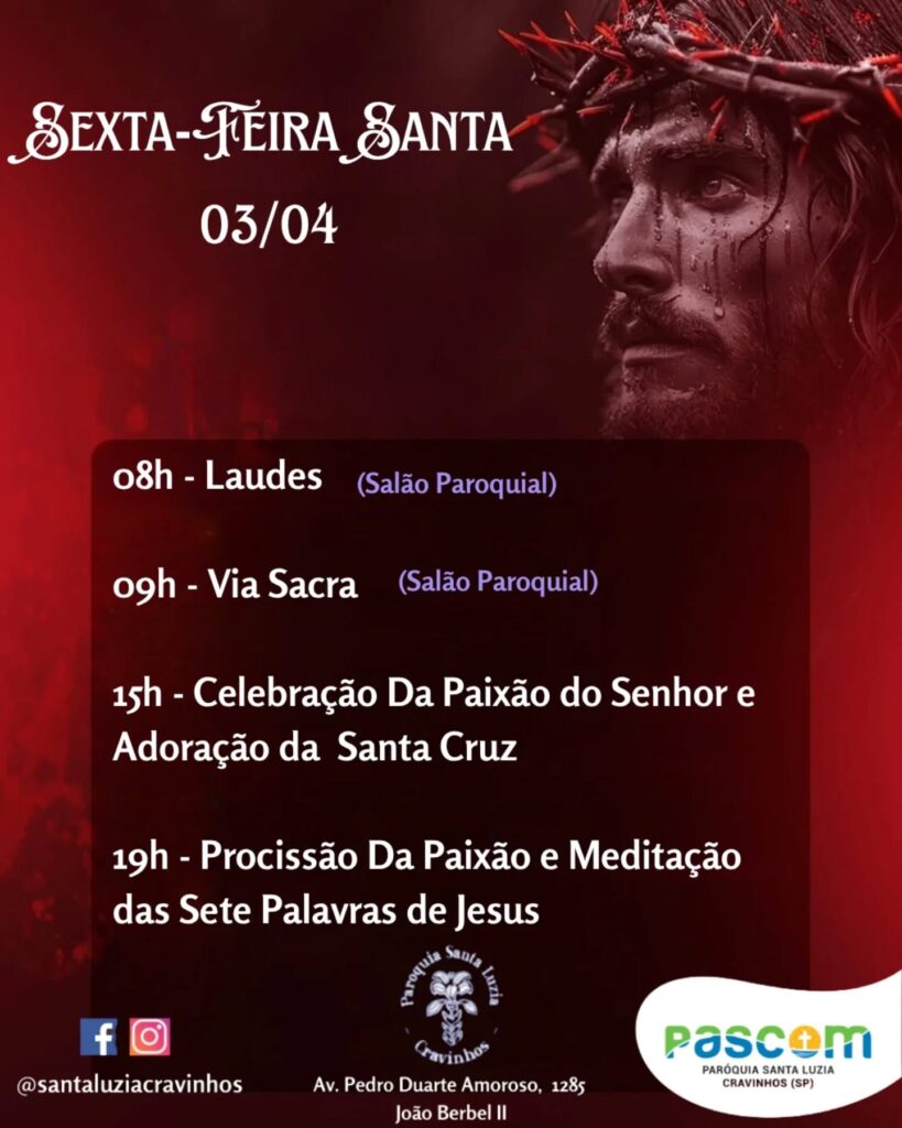 03/04: Sexta-feira Santa da Paixão do Senhor – Dia de Jejum e Abstinência