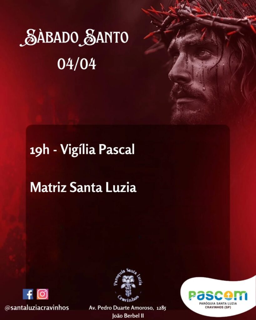 19h30: Celebração da Vigília Pascal – Comunidade São Judas Tadeu