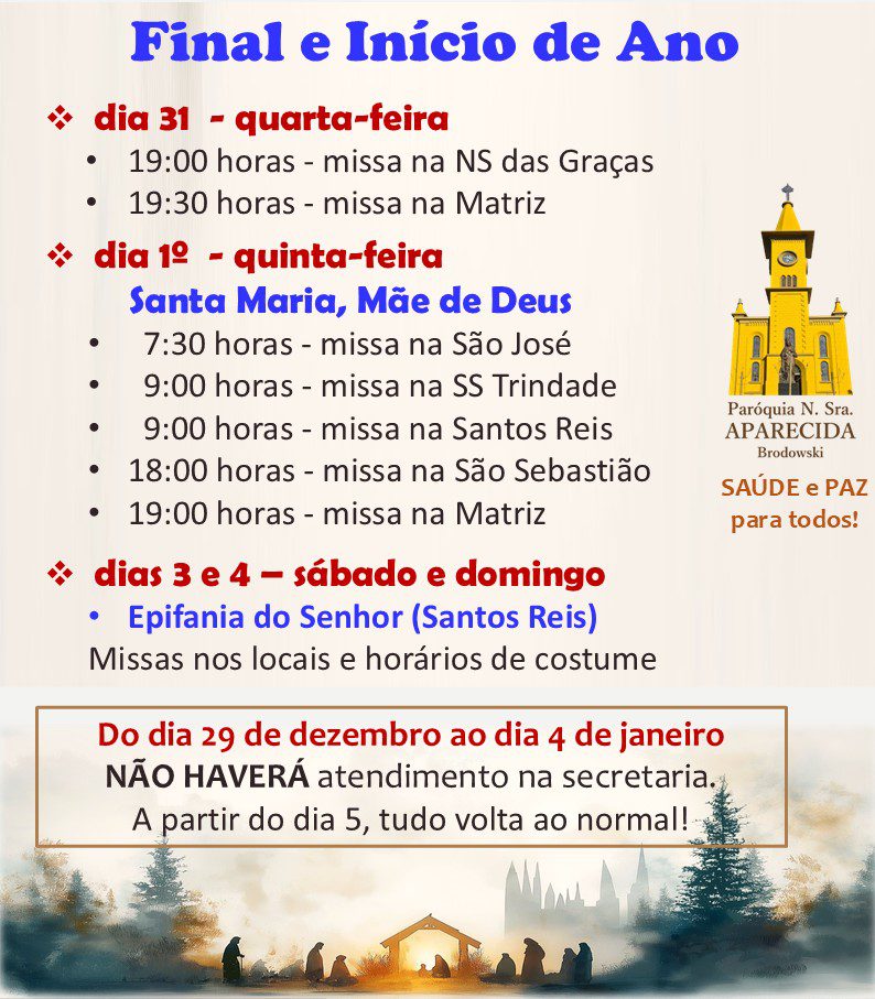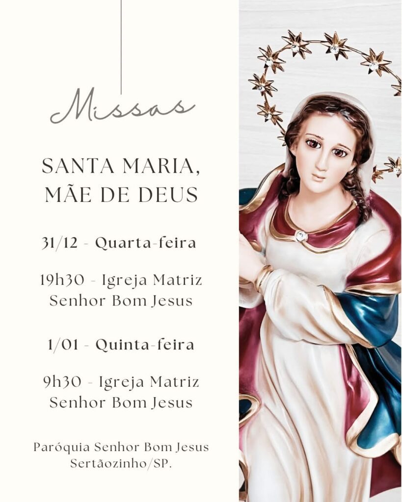 01 de janeiro de 2026: 9h e 19h (Santuário)