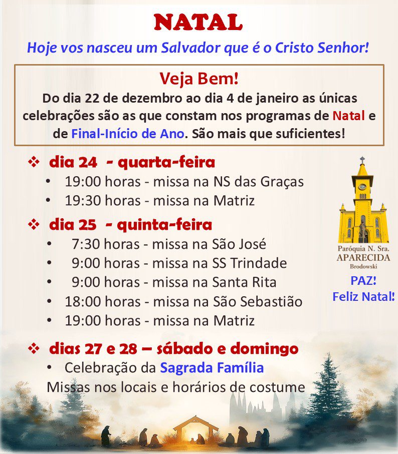 24 de dezembro: 19h (Nossa Senhora Aparecida)