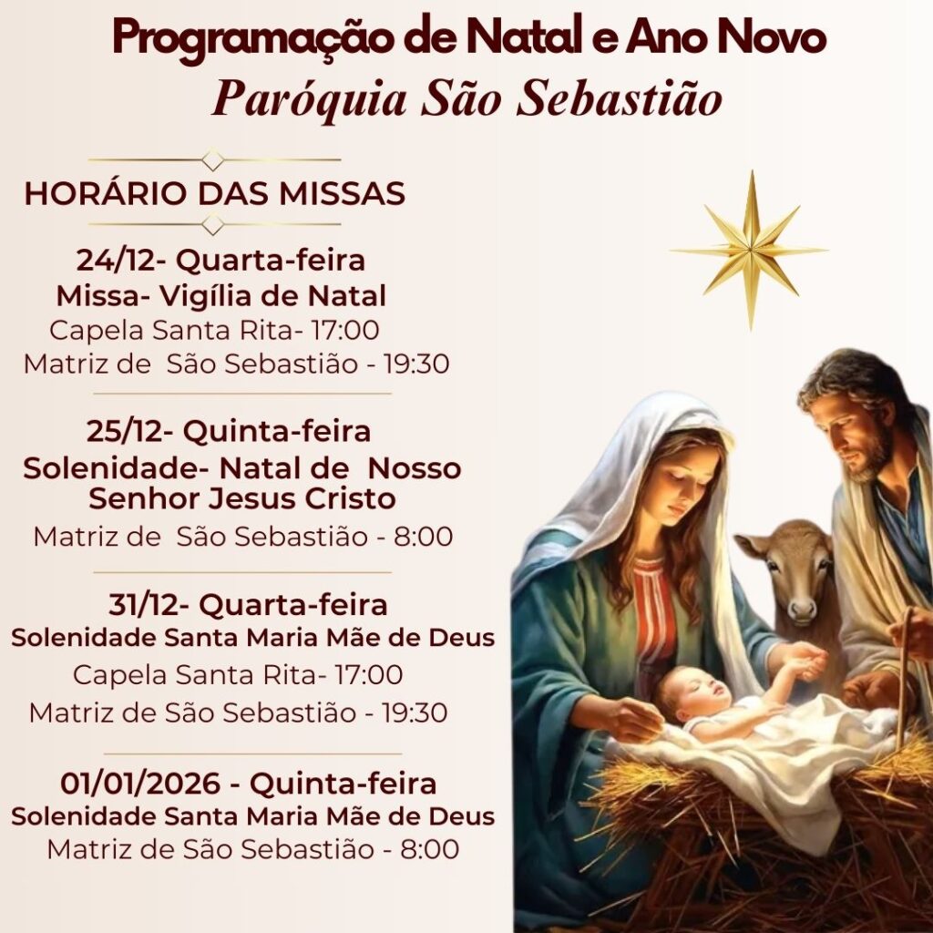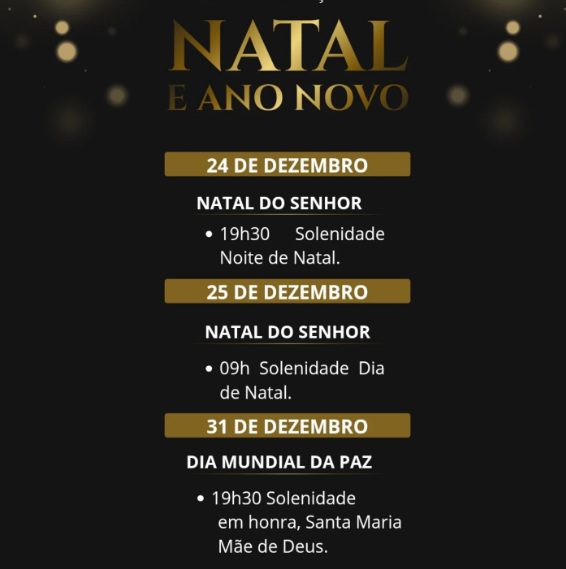 Missas na Solenidade do Natal de Nosso Senhor Jesus Cristo e Santa Maria, Mãe de Deus – 2025/26