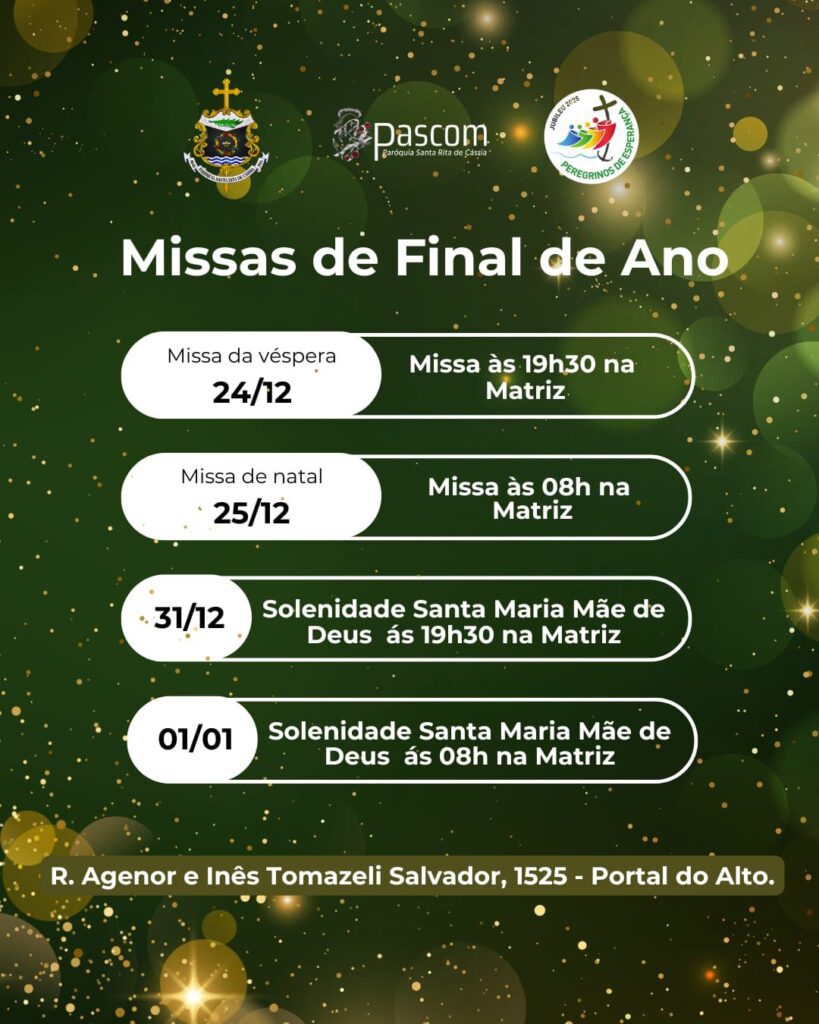 25 de dezembro: 8h, 10h e 19h