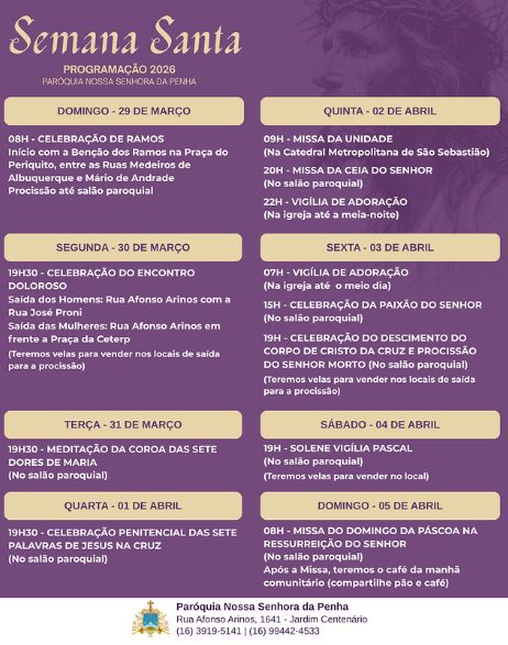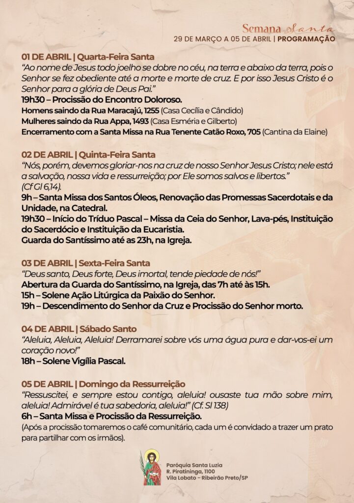 Programação Semana Santa: Paróquias da Cidade de Ribeirão Preto – 2026