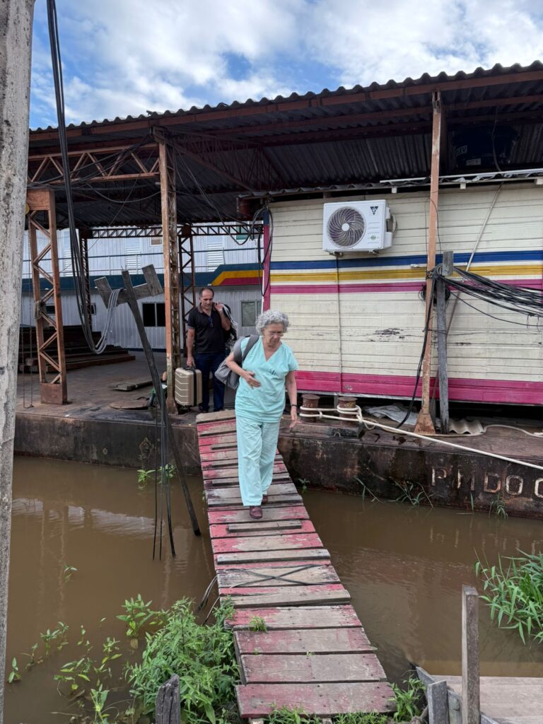 A partir do dia 14, as missionárias cruzaram o majestoso encontro dos rios Solimões e Negro, até a acolhedora ilha do Careiro da Várzea, onde o verde acompanha o caminho das águas. Foram dias de travessia por canais silenciosos e profundos, por caminhos bordados de palmeiras e esperanças. Elas visitaram escolas, unidades de saúde, comunidades. Em cada rosto encontrado, um pedido. Em cada gesto missionário ressoava a resposta na delicadeza dos atendimentos. Com mãos e corações abertos, a missionárias acolheram pacientes de todas as idades – sedentos por atenção, alívio, cuidado.