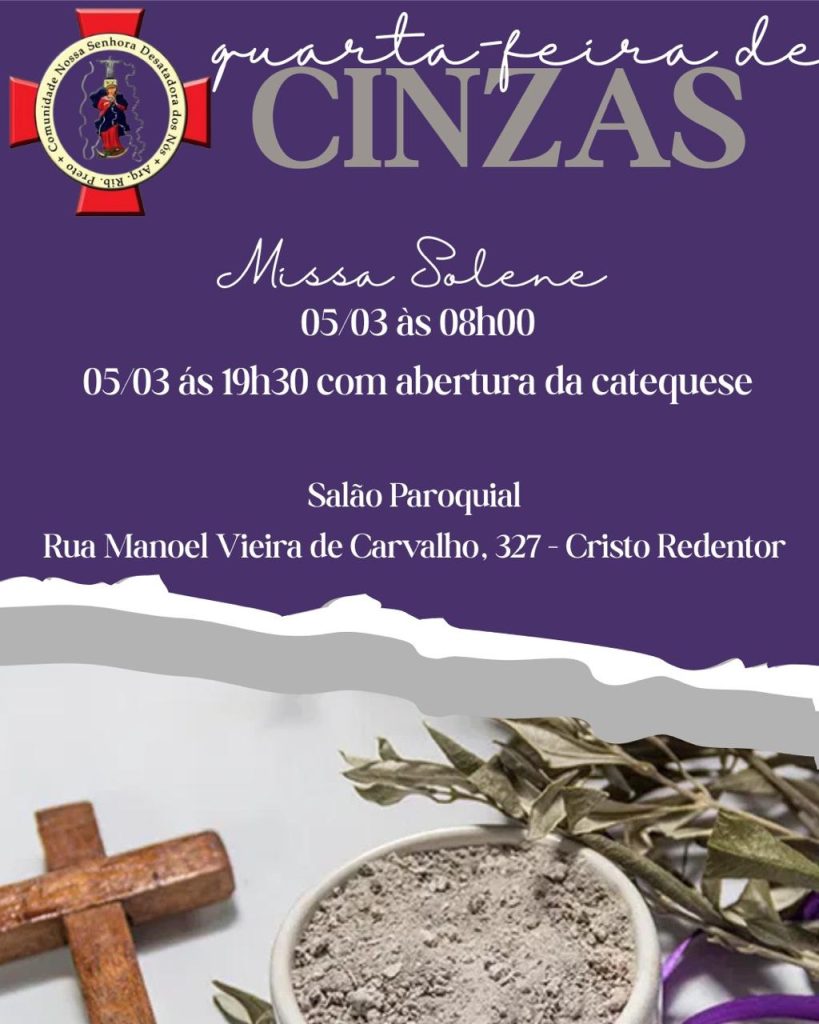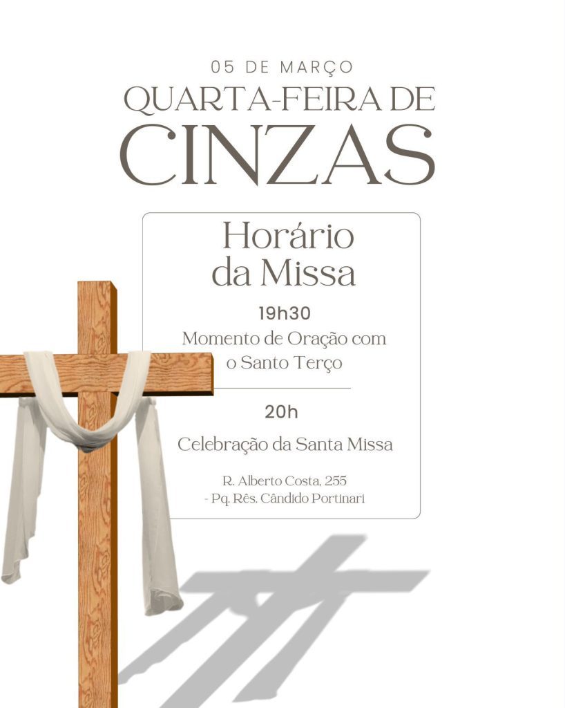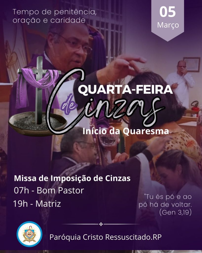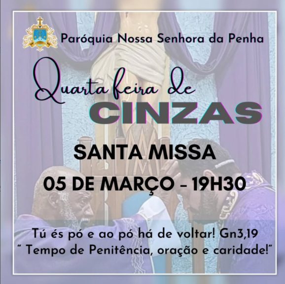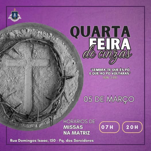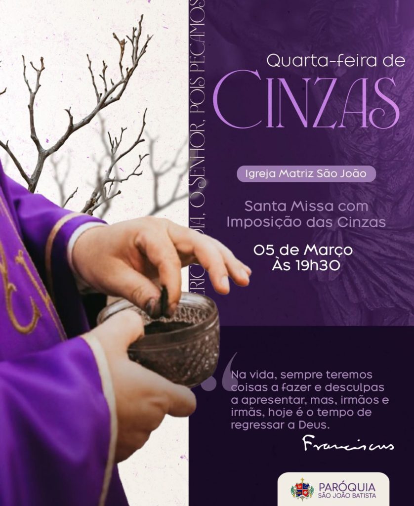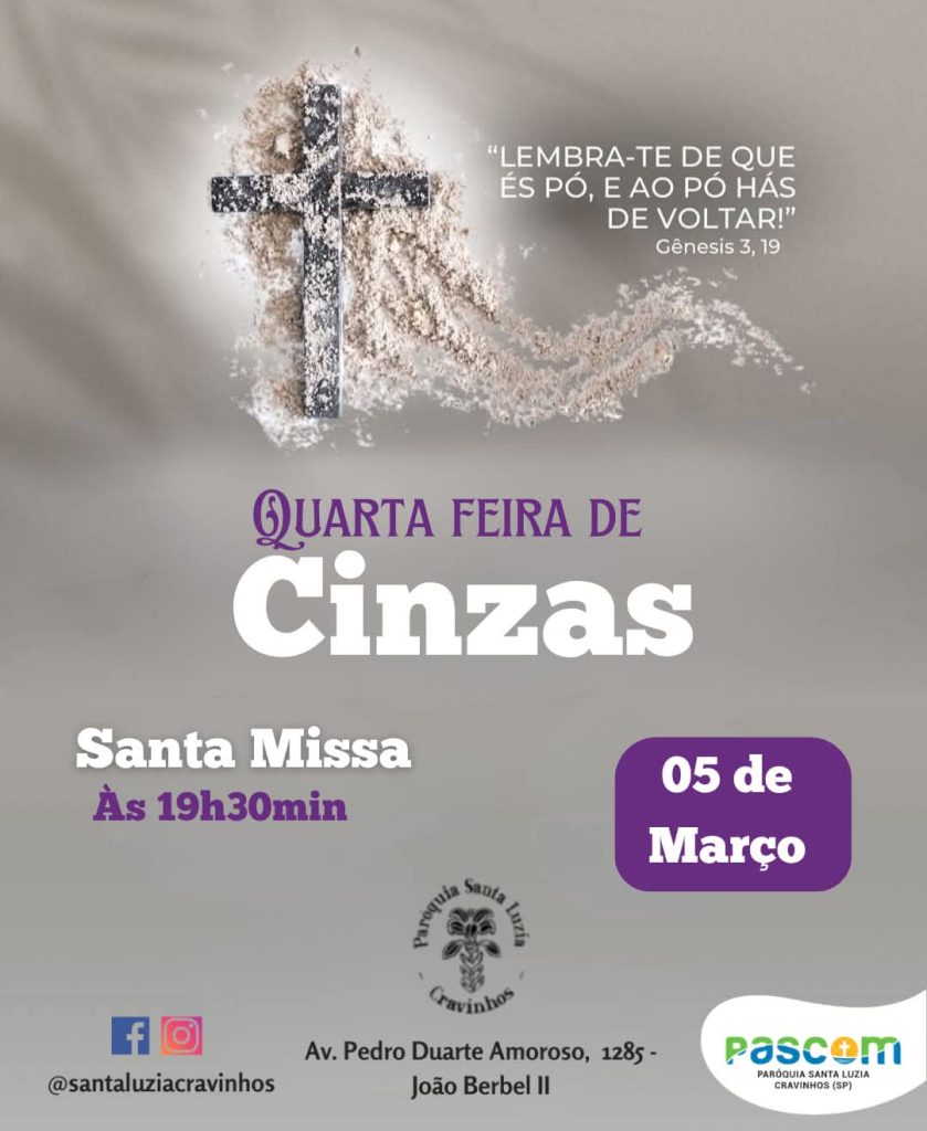 Dia: 05 de março – Quarta-feira de Cinzas