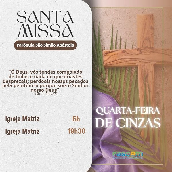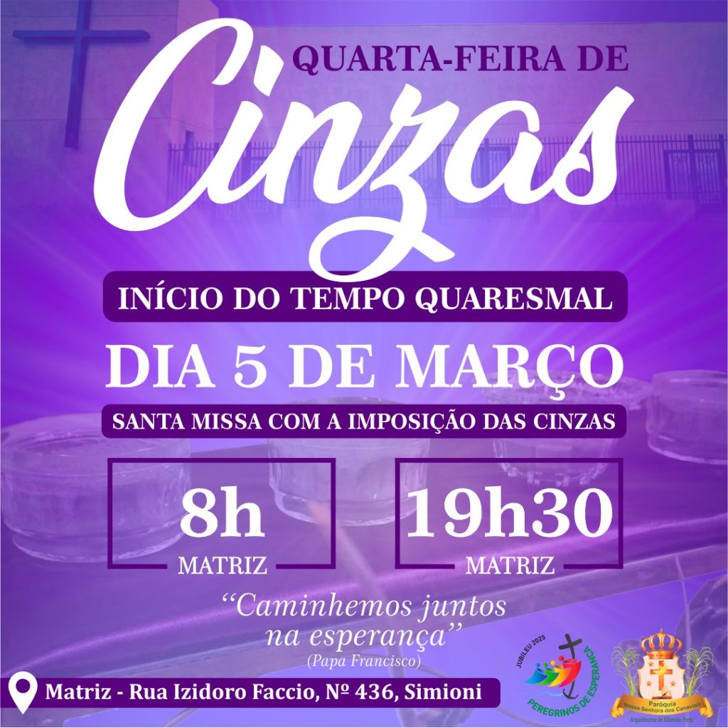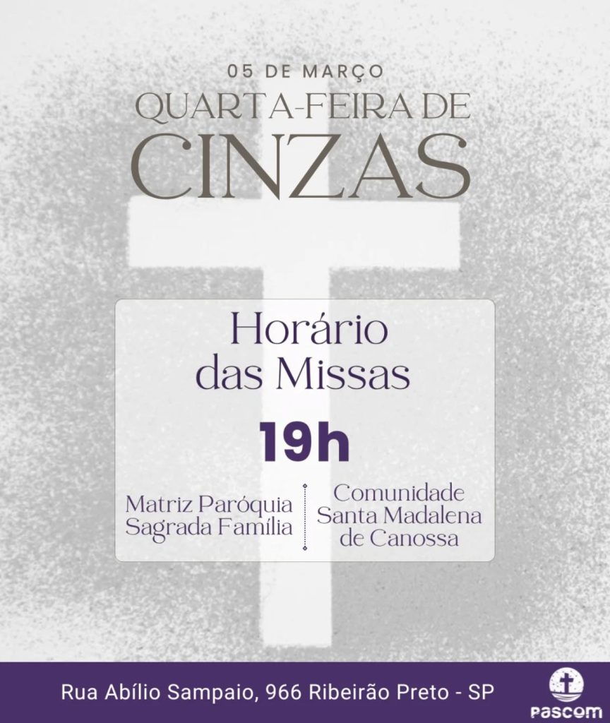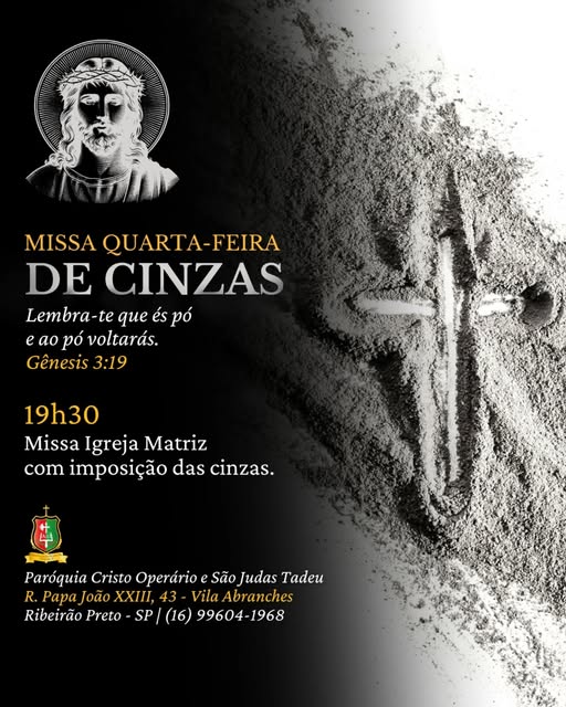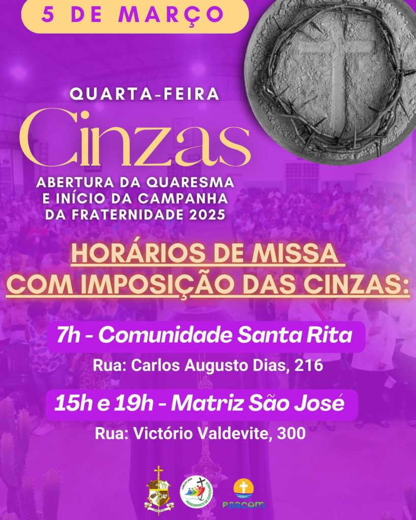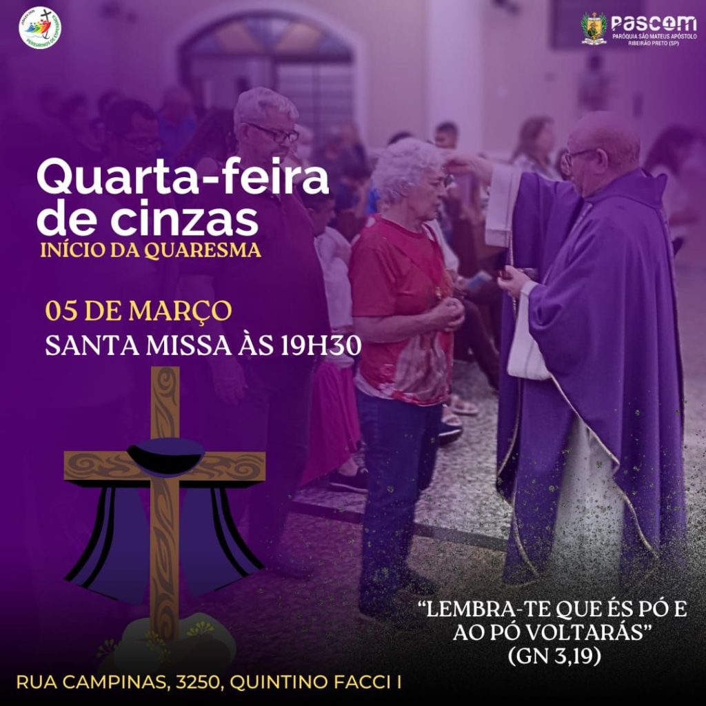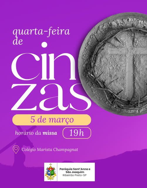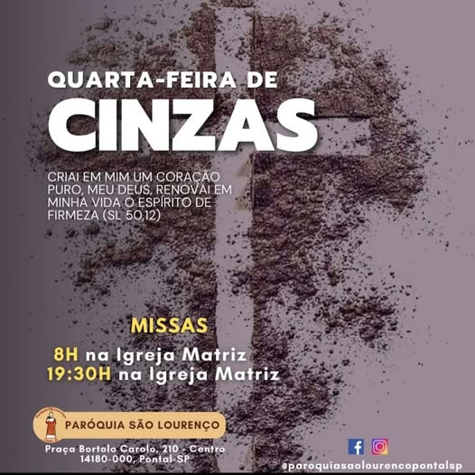 Dia: 05 de março – Quarta-feira de Cinzas