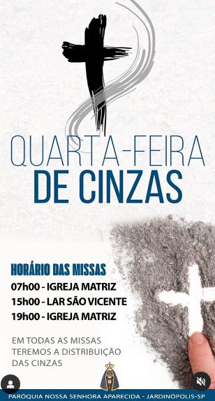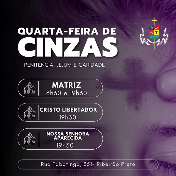 Horário das missas paroquiais na Quarta-feira de Cinzas 2025