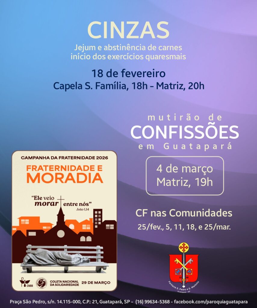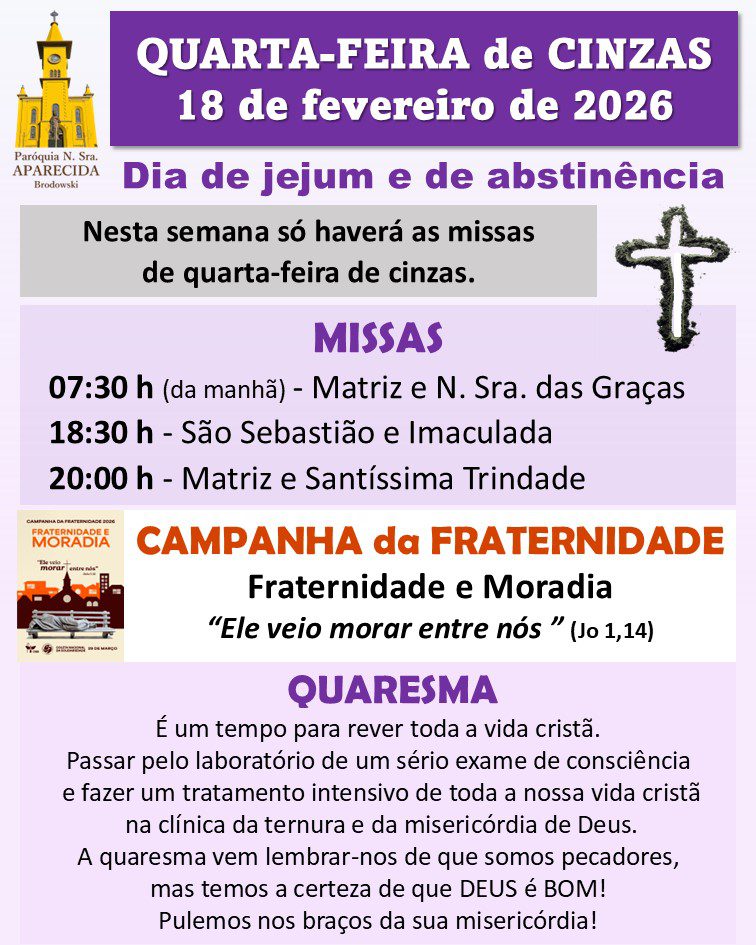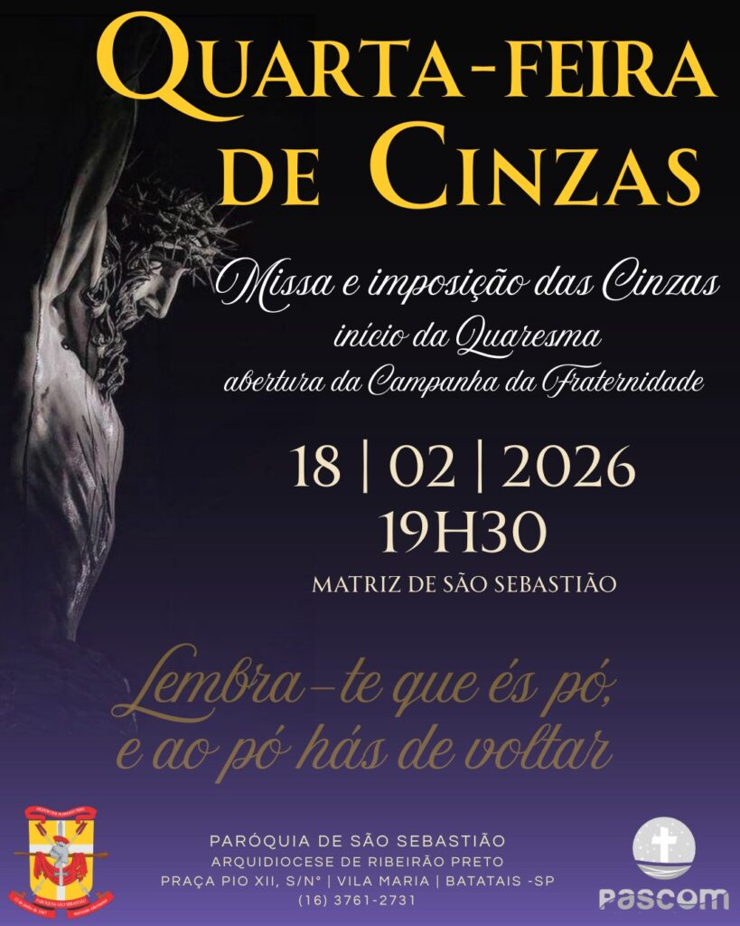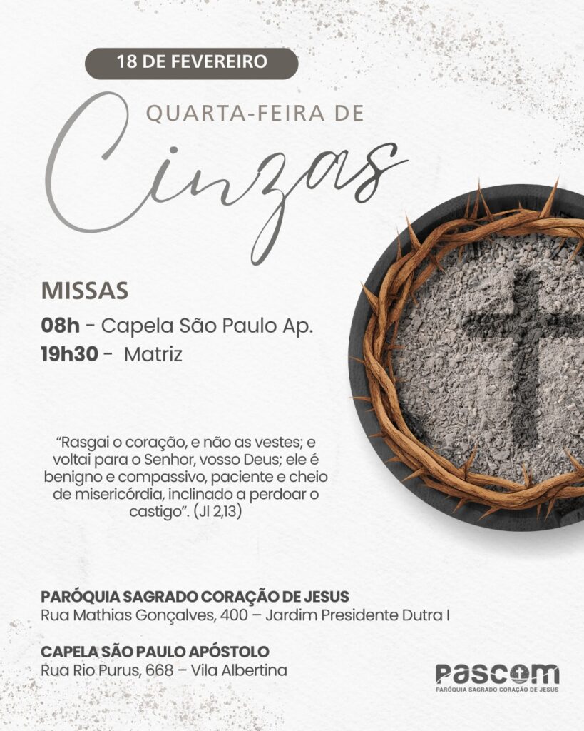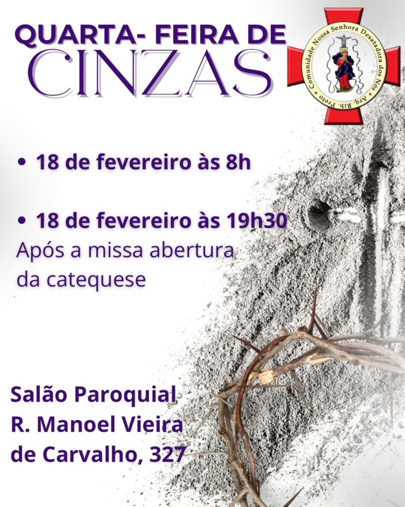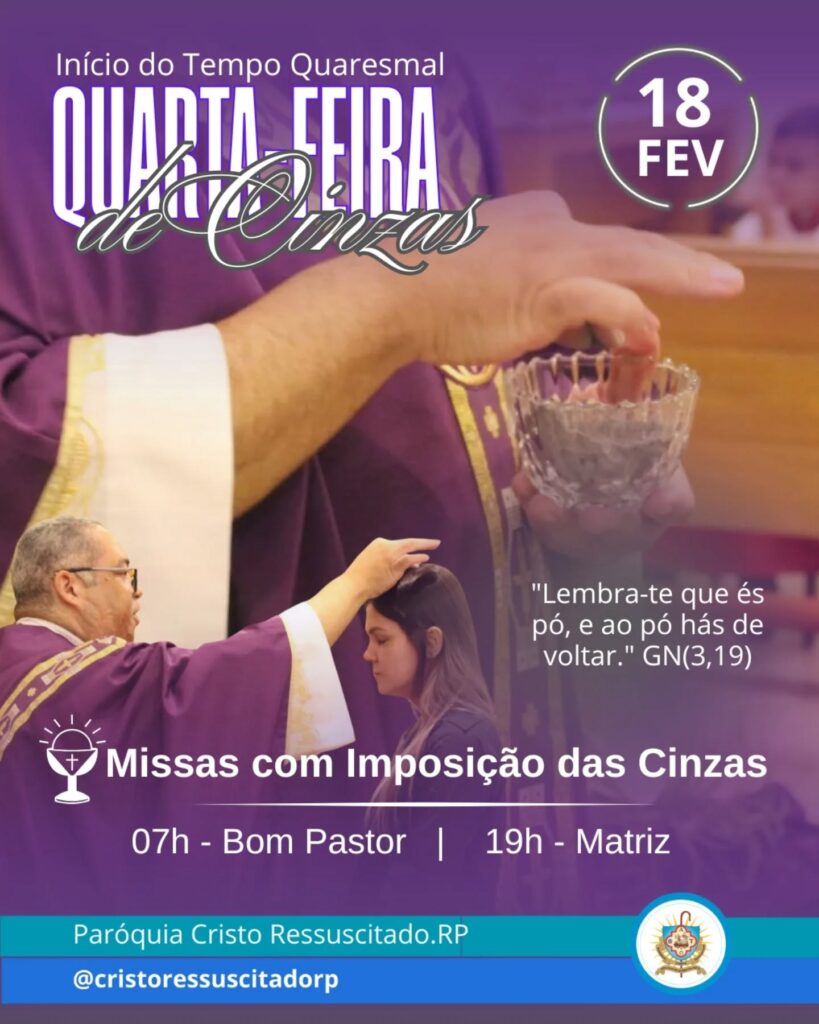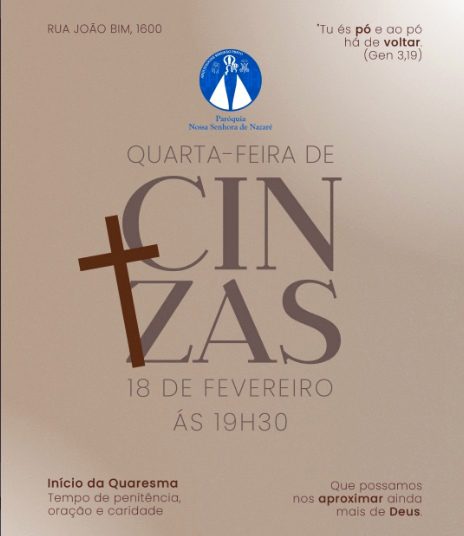 Dia: 18 de fevereiro – Quarta-feira de Cinzas