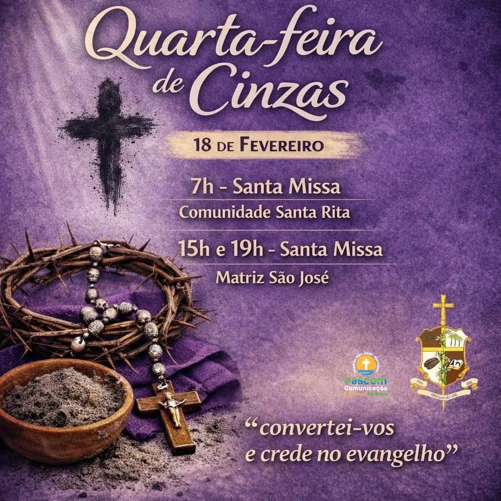 Horário das missas paroquiais na Quarta-feira de Cinzas 2026
