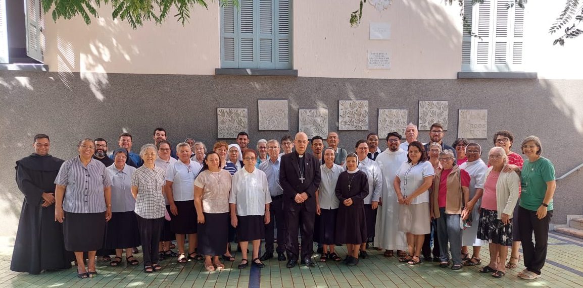 Em 18 de maio, os religiosos e religiosas da Conferência dos Religiosos do Brasil (CRB) Núcleo Ribeirão Preto, se reuniram no Colégio Auxiliadora (Congregação Salesiana), em Ribeirão Preto, para juntos partilharem o tema das relações fraternas na vida comunitária. O encontro reuniu 35 religiosos e consagrados, e contou com a assessoria da Ir. Edilamar da Glória Martins, cp, religiosa passionista e membro da coordenação da CRB Regional Sul 1 da CNBB. Em sua fala a assessora ressaltou a necessidade de superarmos as diferenças que nos afastam e vivermos a partir dos pontos comuns que nos unem e nos fazem caminhar sob a luz do Espírito, dentro do carisma assumido nas respectivas ordens, congregações e comunidades de vida. Também esteve conosco o Padre Luís Gustavo Benzi, Coordenador Arquidiocesano de Pastoral e o arcebispo Dom Moacir Silva, que na celebração Eucarística agradeceu a cada um dos presentes pela doação de suas vidas neste território da Igreja Particular de Ribeirão Preto. De fato, este encontro foi um momento formativo e celebrativo, onde cada um dos participantes pôde também confraternizar e conviver com os demais presentes.