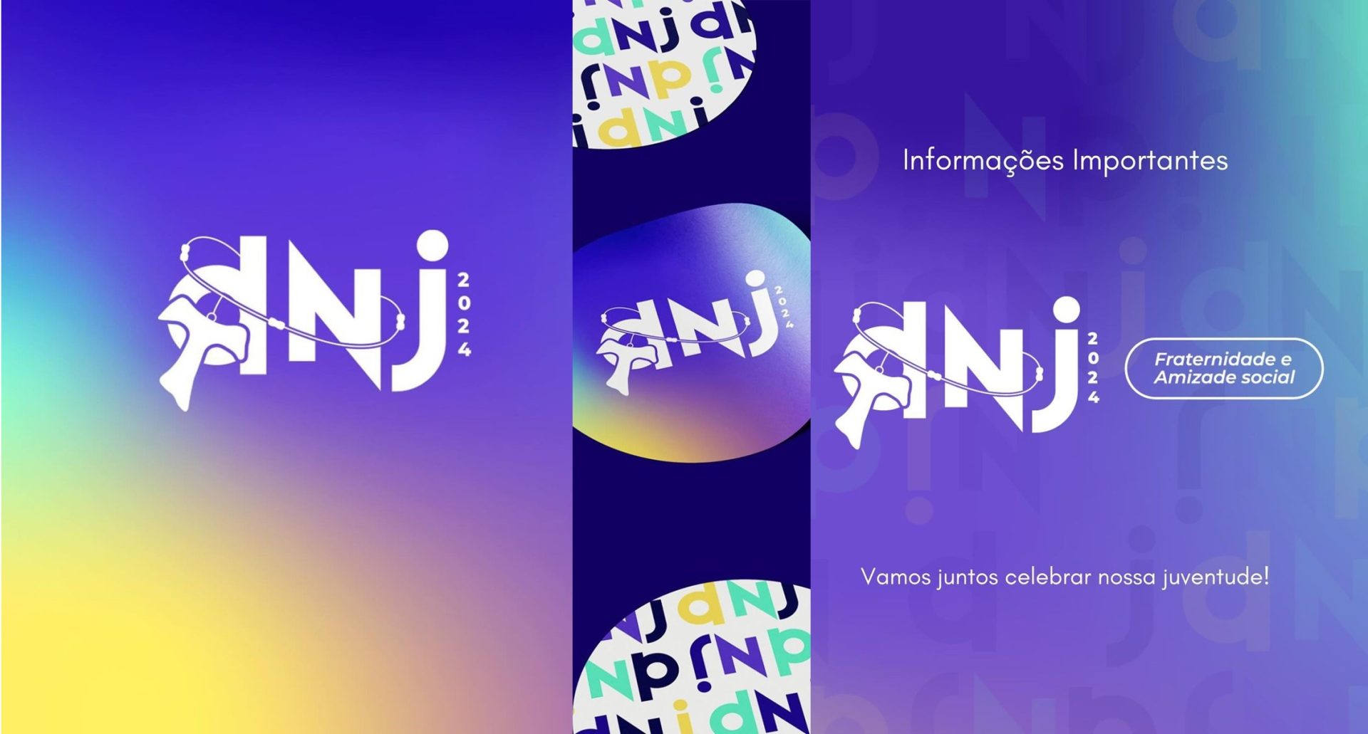 Identidade Visual: A identidade visual do DNJ 2024 captura a essência da juventude com uma paleta vibrante que simboliza sua energia e criatividade. O logotipo incorpora a espiritualidade franciscana com a Cruz de Tau e os três nós, representando os valores de pobreza, obediência e castidade, em referência à Paróquia São Francisco de Assis, organizadora do evento deste ano.