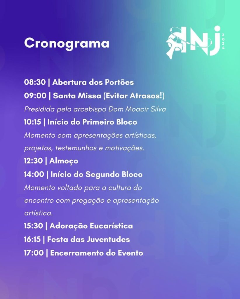 O Dia Nacional da Juventude está chegando e você não pode ficar de fora! Faça a inscrição e chame seus amigos para juntos celebrarmos a nossa juventude!